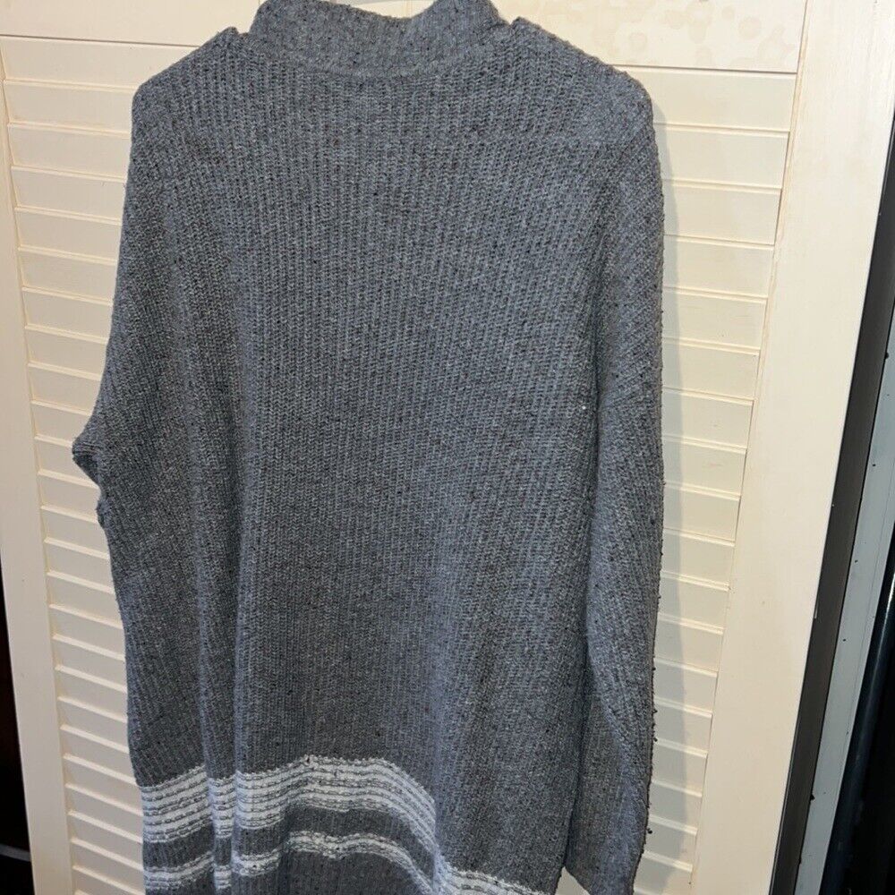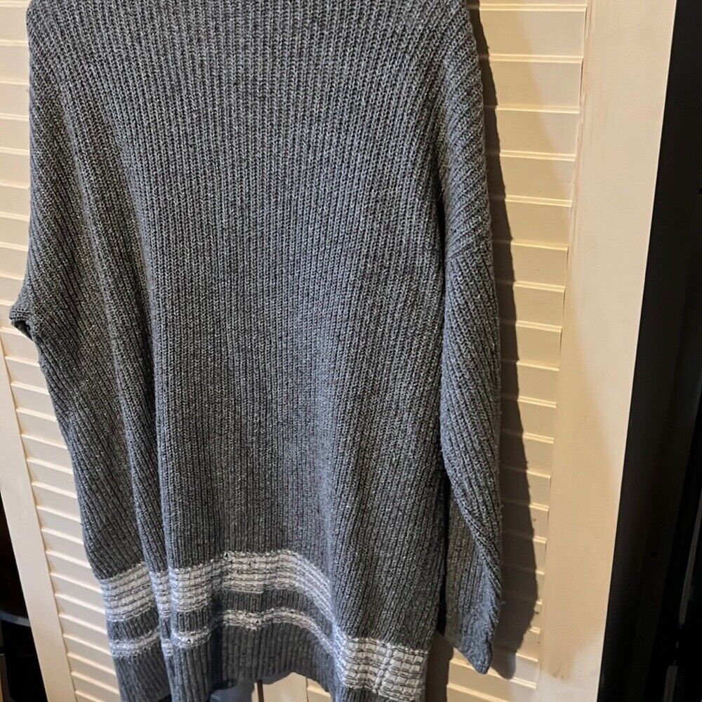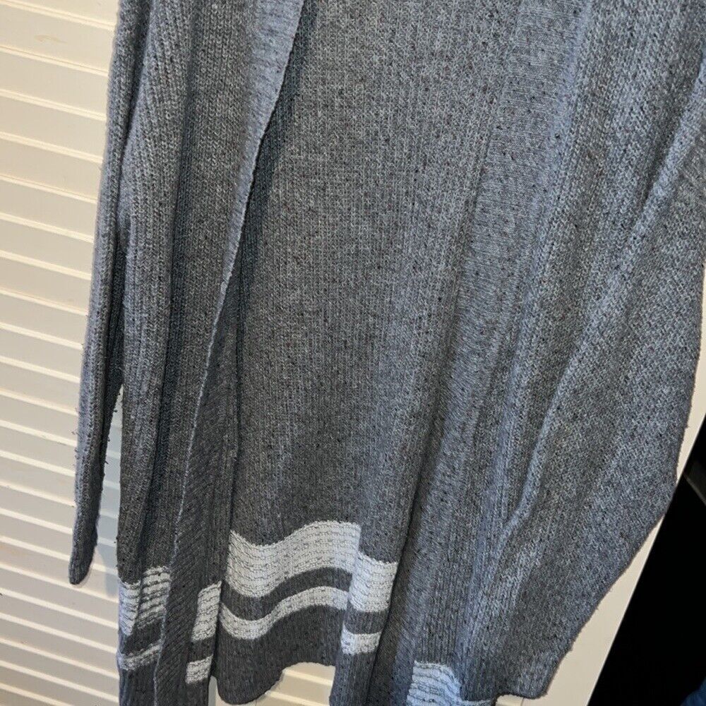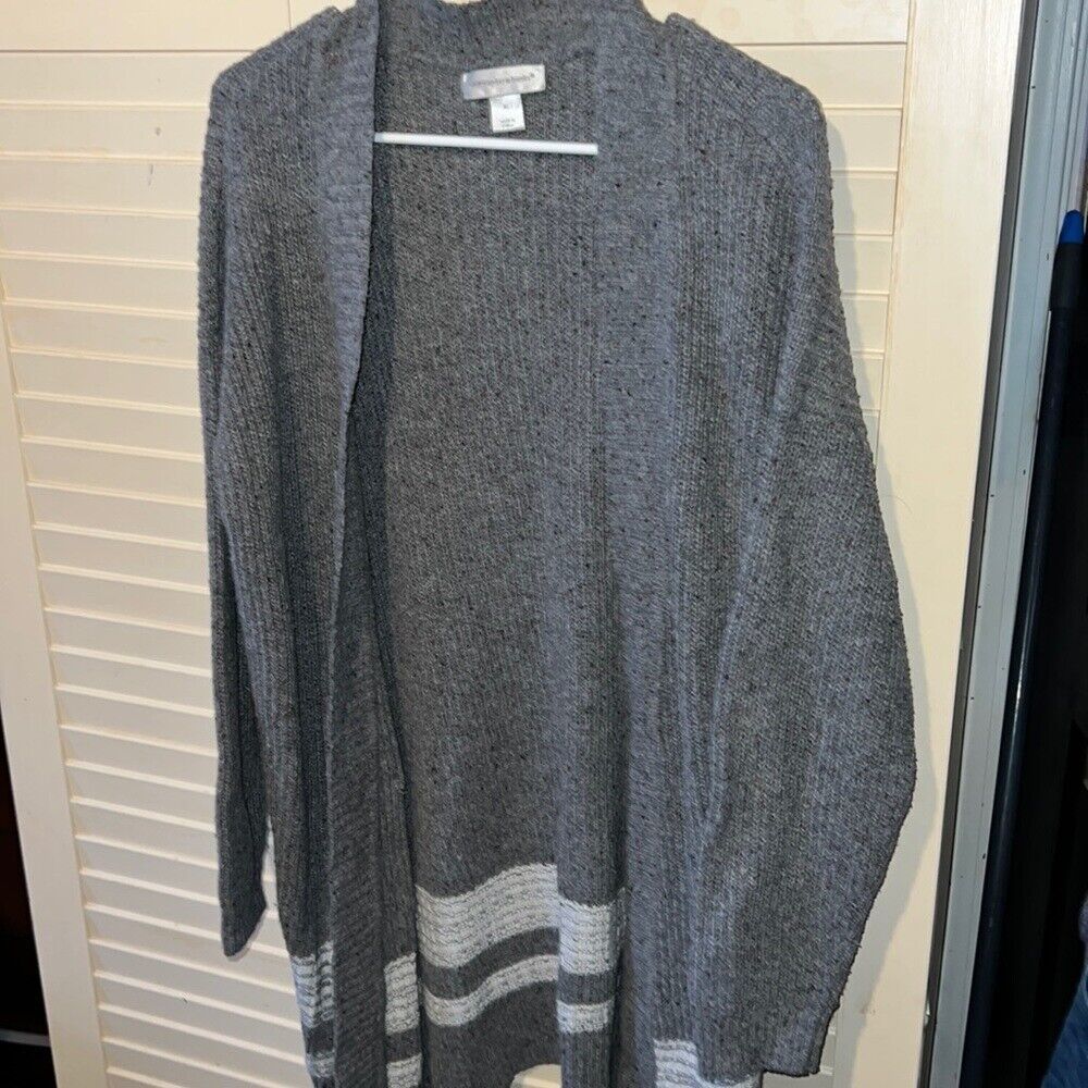 Christopher and banks, gray extra-large, open knit cardigan, stripe detail on the bottom