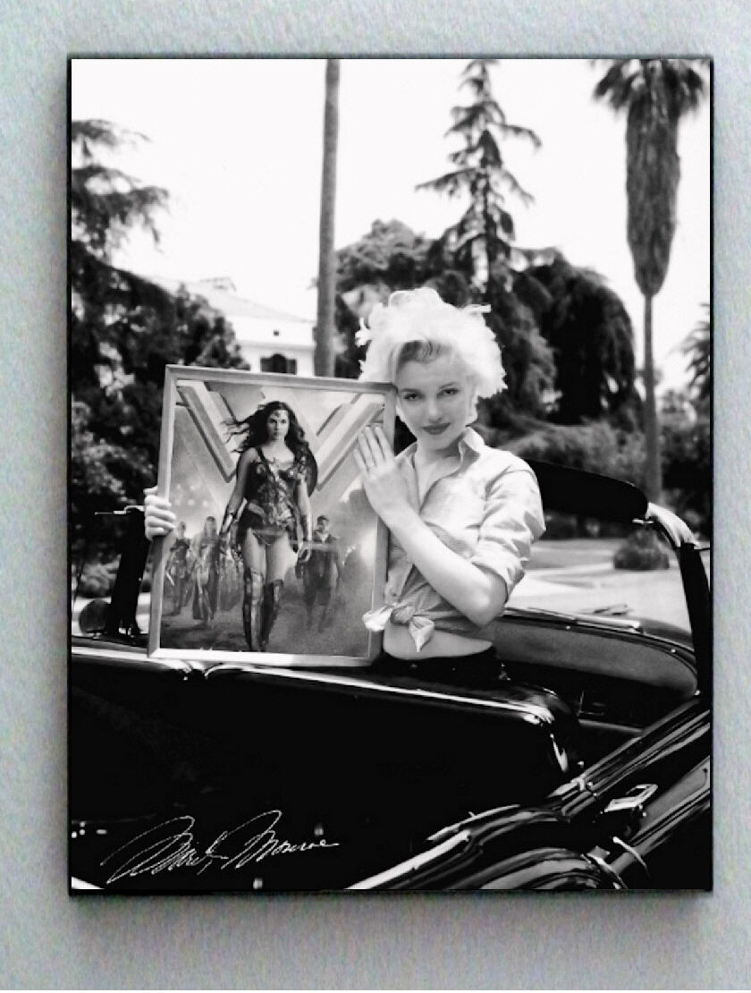 Framed Marilyn Monroe holding Wonder Woman Movie + faux signed Limited Edition