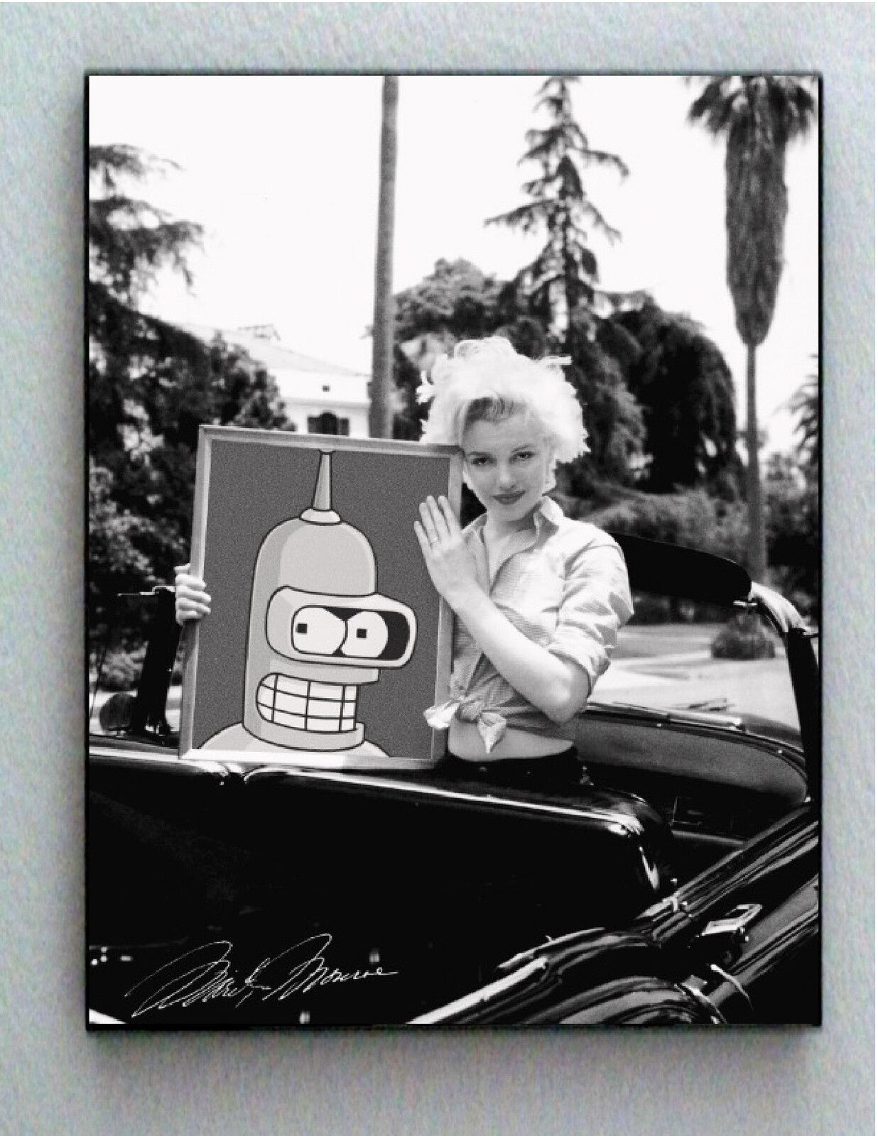 Framed Marilyn Monroe holding Futurama Bender w/faux signed autograph Lim. Ed.
