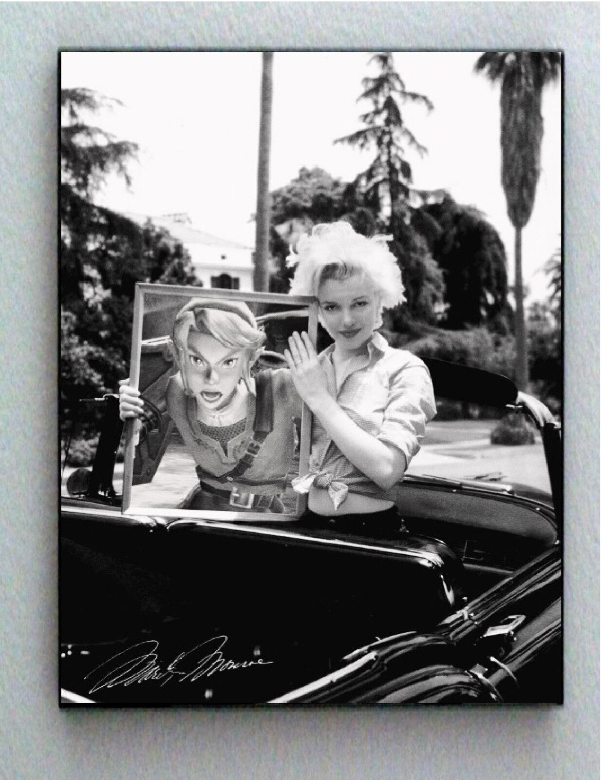 Framed Marilyn Monroe holding The Legend of Zelda Link w/faux signed Lim. Ed.