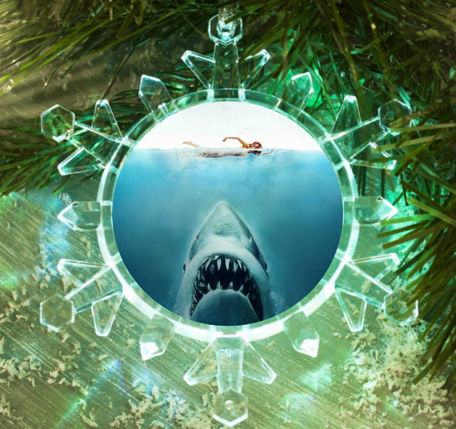 Jaws Shark Movie Snowflake Multi Color Blinking Holiday Christmas Tree Ornament