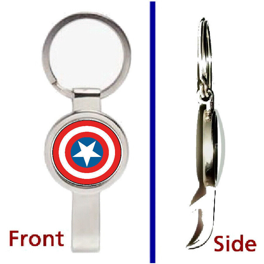 Captain America Pendant or Keychain silver tone secret bottle opener