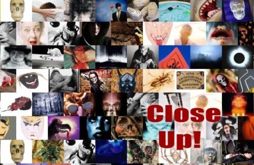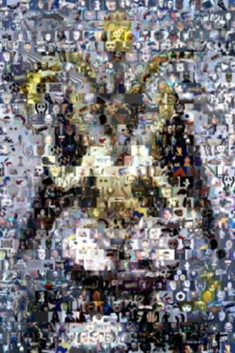 At first glance this looks like a picture of one of the Baphomet but look closer. Its actually 100's of mini-pictures that are 1/4 inch by 1/4 inch with remarkable detail (click on "close up" image). The mini-pictures are of all the great horror movies characters of all time including Freddy, Jason, Michael Myers, Chucky and lots more, also weird horror, scary and odd scenes. The entire item is 8 1/2 inches by 11 inches and perfect for framing.