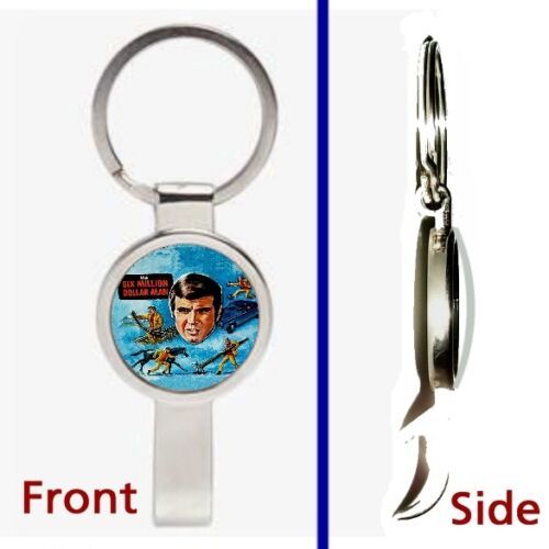 6 Six Million Dollar Man Pennant or Keychain silver tone secret bottle opener