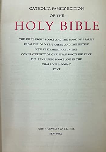 Catholic Family Edition of the Holy Bible. [Hardcover] John J. Crawley & Co. (Au