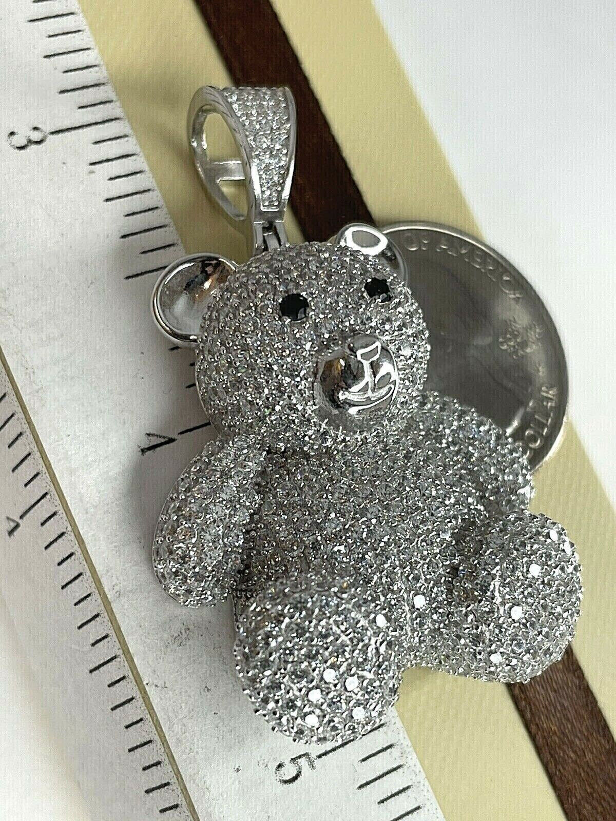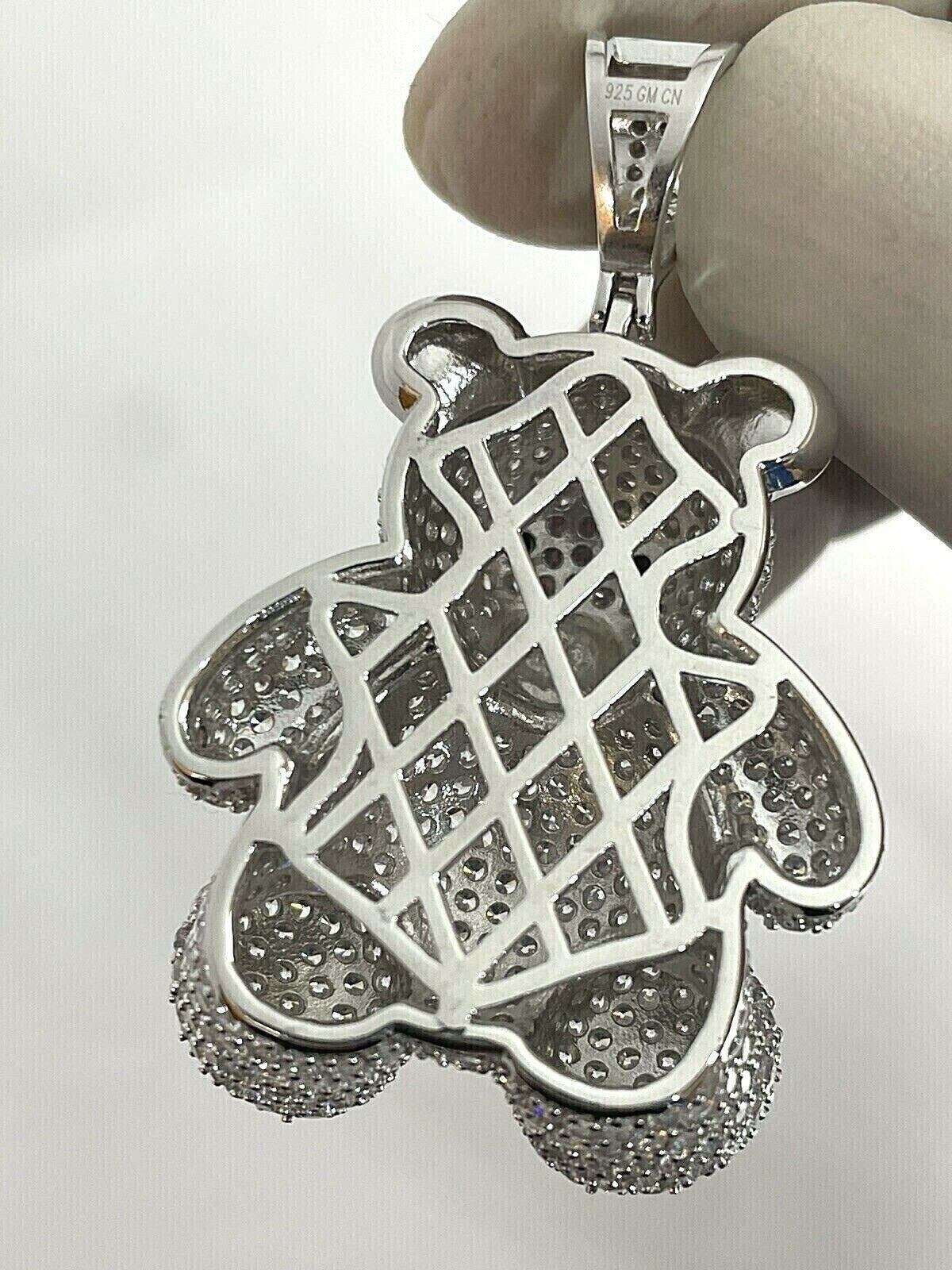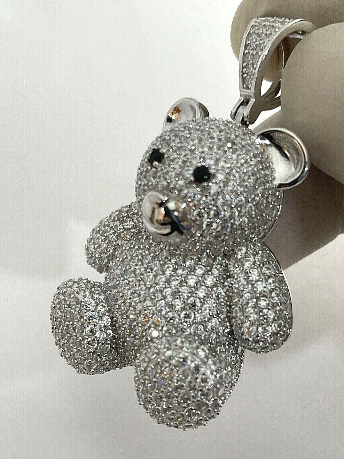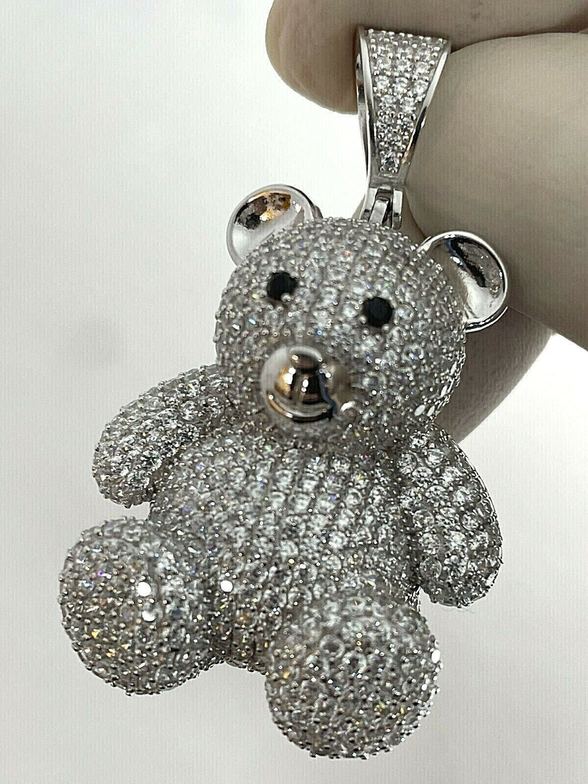 2Ct Round Cut Moissanite Teddy Bear Men'sPendant 14K White Gold Plated 18''Chain