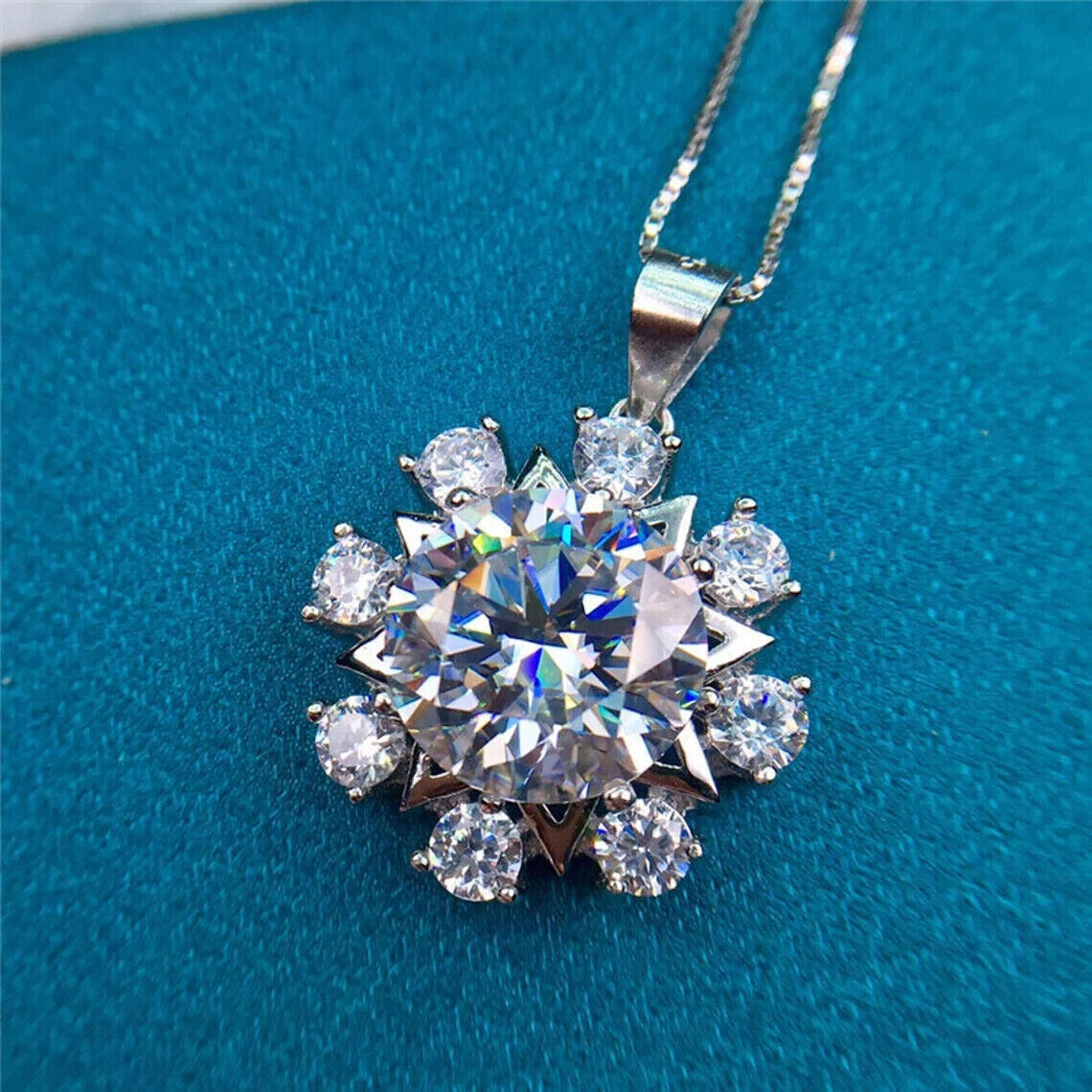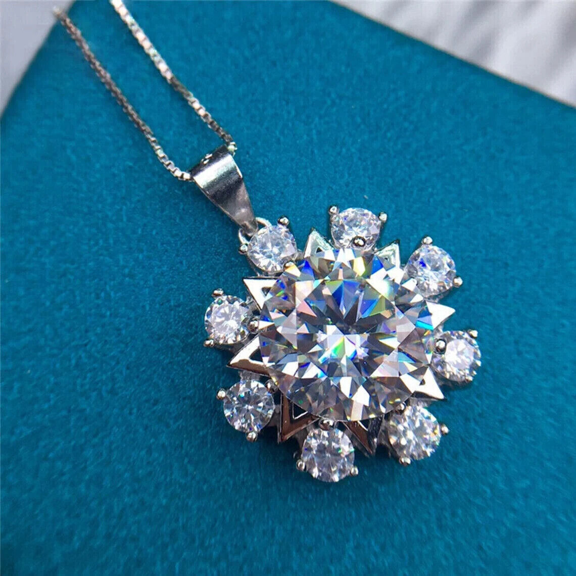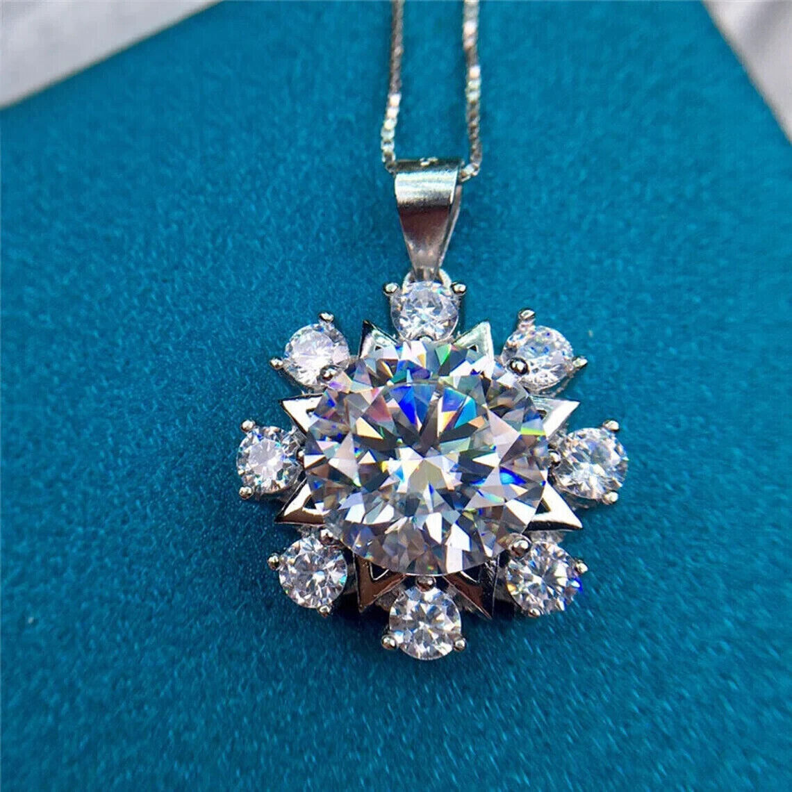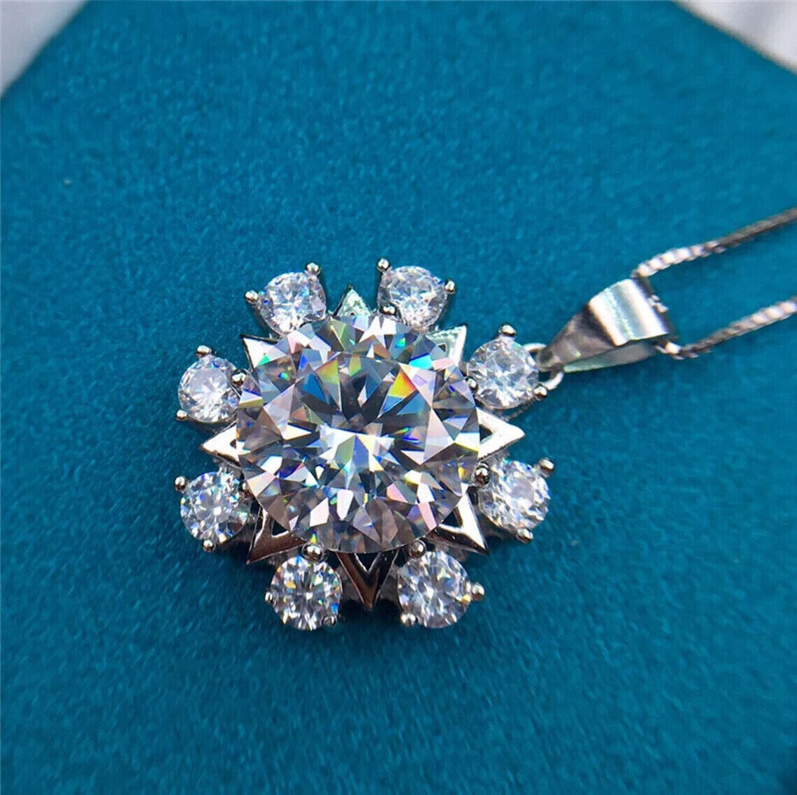 2.10Ct Round Cut Moissanite Star Halo Pendant 14K White Gold Plated Chain