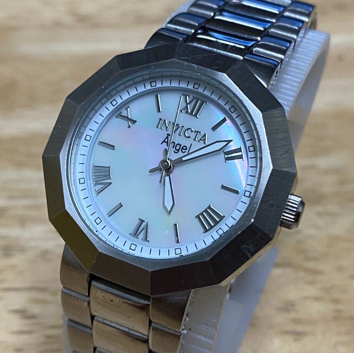 Invicta Angel 0542 Lady 30m Silver Steel Dodecagon Analog Quartz Watch~New Batte