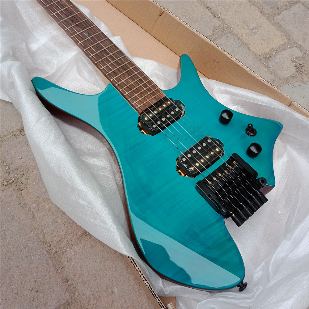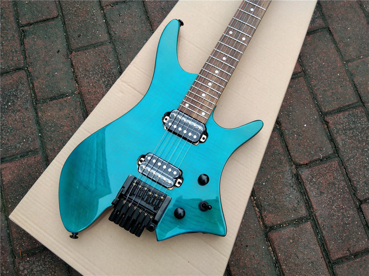Blue Normal Frets 6 Strings Headless Electric Guitar,Mahogany Body SD467