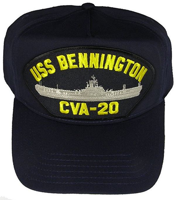 USS BENNINGTON CVA-20 HAT - LARGER PATCH SIZE Approx 6" x 3 1/4" - Adjustable Size, Navy Blue Golf Style Hat. Veteran Owned and Operated Business