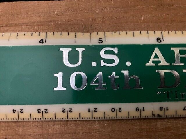Vintage US Army Reserve Military Recruiting Ruler Advertising Timberwolf Division. Good condition. Washington State Military Collectible. Please note some yellowing and slight divot at the 4.5" mark (refer to images)
