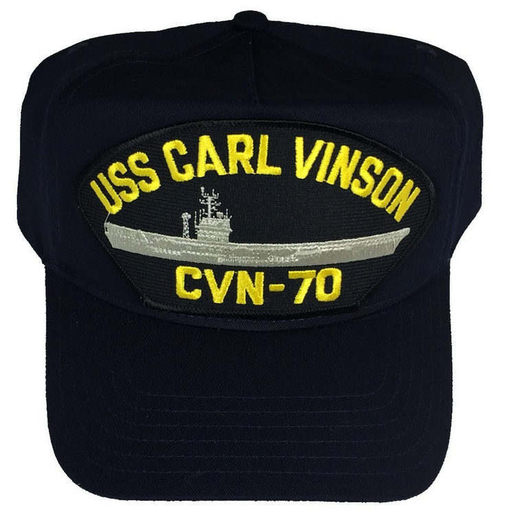 USS CARL VINSON CVN-70 Hat - NAVY BLUE Golf Style hat. Veteran Owned Business. NAVY BLUE Cap High Detail and Impact - USS CARL VINSON CVN-70 Hat. 8 Rows Stitching on Visor and Pro Stitch on Crown 5 panel hat. Adjustable Size with Velcro, NAVY BLUE Golf Style. Veteran and Family Owned and Operated Business - 2 Generations of Retired Marines!
