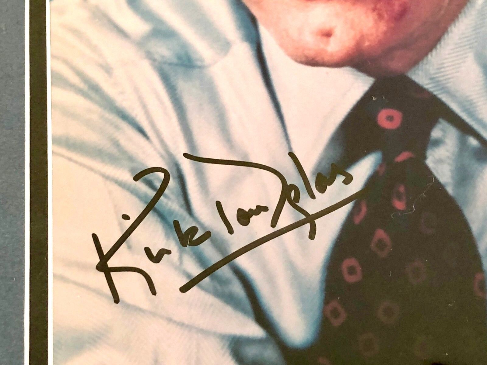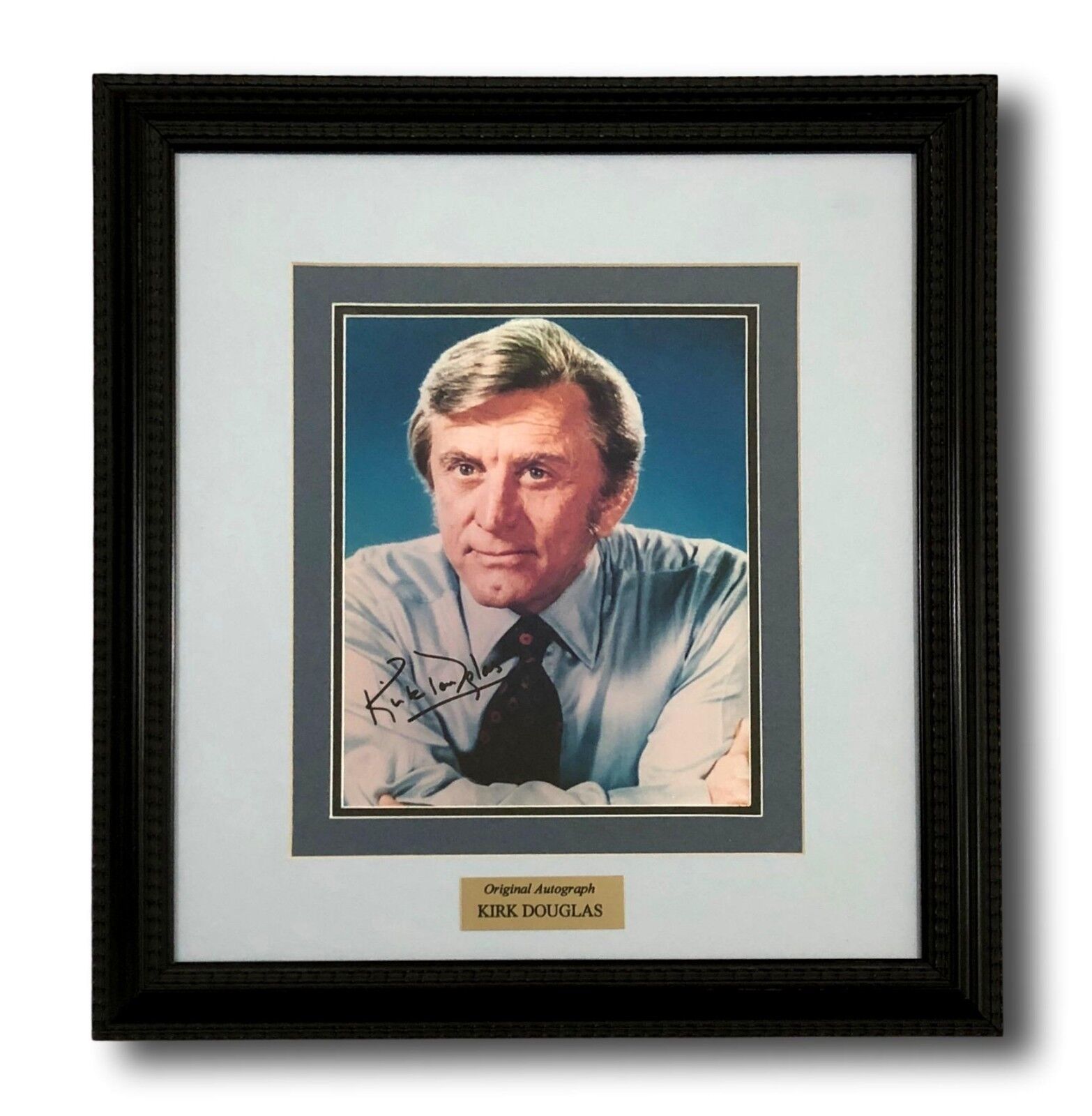 LOOKING FOR THAT UNIQUE ITEM FOR YOUR MAN CAVE? WELL THIS IS IT!! KIRK DOUGLAS SIGNED 8X10 PHOTO!! THIS IS A MUST HAVE FOR ALL KIRK DOUGLAS FANS!! THIS PHOTO IS PROFESSIONALLY CUSTOM FRAMED IN A FRAME THAT MEASURES APPROXIMATELY 17" X 19" WITH A GLASS DISPLAY, A GOLD NAMEPLATE ART GALLERY STYLE TRIPLE MATTING! THIS PIECE IS SURE TO SHINE ON YOUR WALL!!