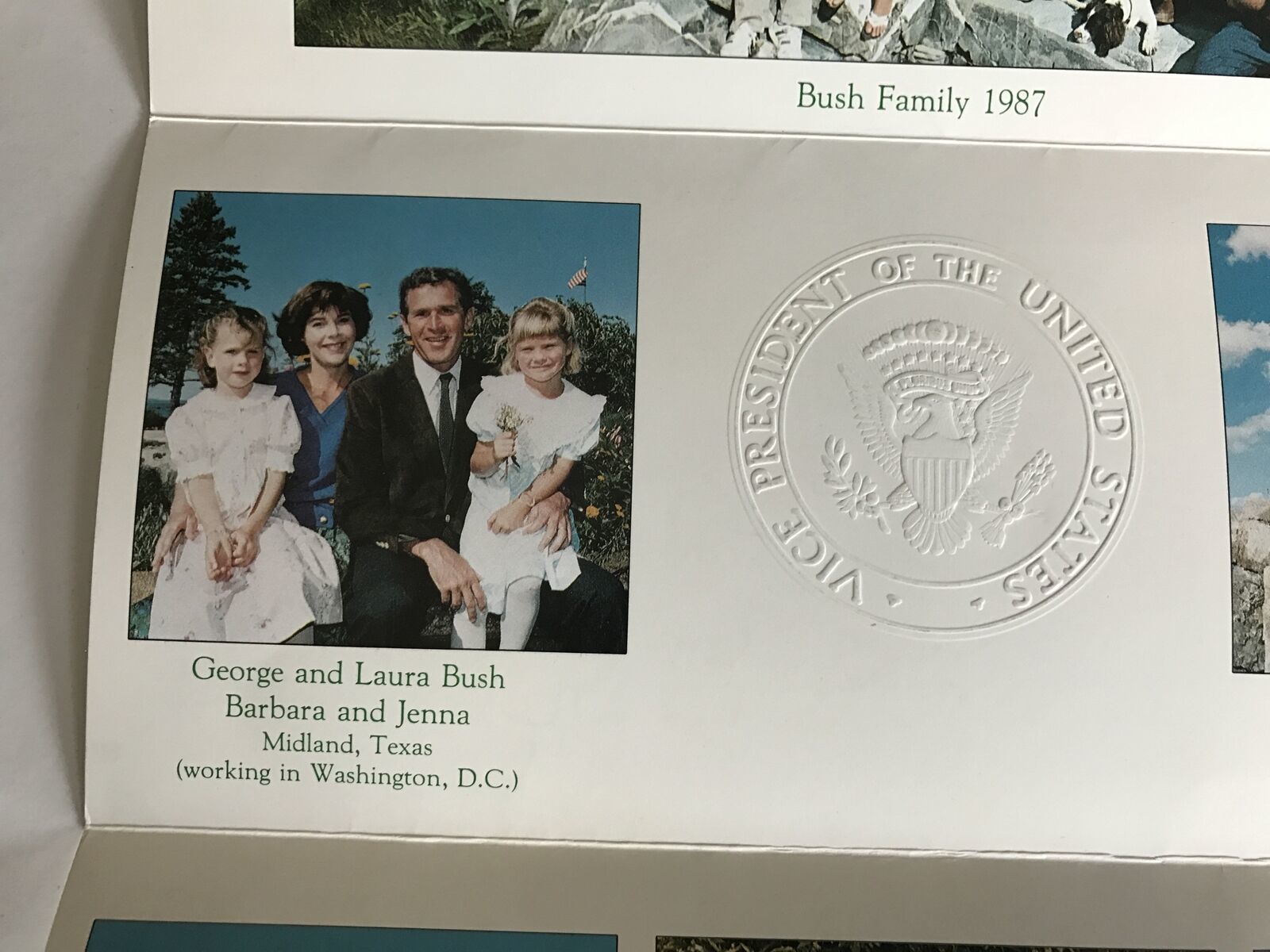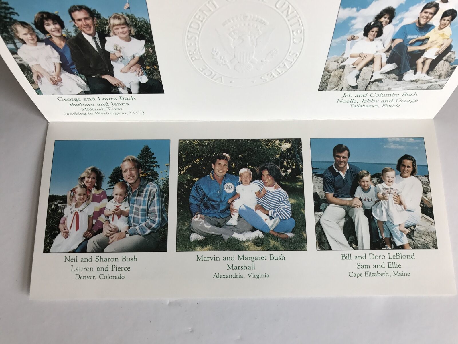 ITEM: PRESIDENT GEORGE H.W. BUSH SIGNED 1987 FAMILY CHRISTMAS CARD! THIS IS A VERY UNIQUE ITEM AS IT IS A CHRISTMAS CARD OF THE ENTIRE BUSH FAMILY INCLUDING: GEORGE W. LAURA BUSH GOV. JEB BUSH. IN ADDITION, THIS CARD WAS MADE SIGNED DURING WHEN "H.W." WAS VICE PRESIDENT UNDER REAGAN. THIS IS A GREAT EARLY SHOT OF THE FUTURE PRESIDENT "GEORGE W." THESE ARE VERY RARE HARD TO FIND WHICH INCLUDES THE VICE PRESIDENTIAL SEAL IN THE CARD AND CONSIDERED TO BE INTENDED FOR CLOSE FAMILY FRIENDS COLLEAGUES OF THE BUSH FAMILY. A TRUE MUST HAVE FOR ANY BUSH FAMILY FAN OR REPUBLICAN COLLECTORS.