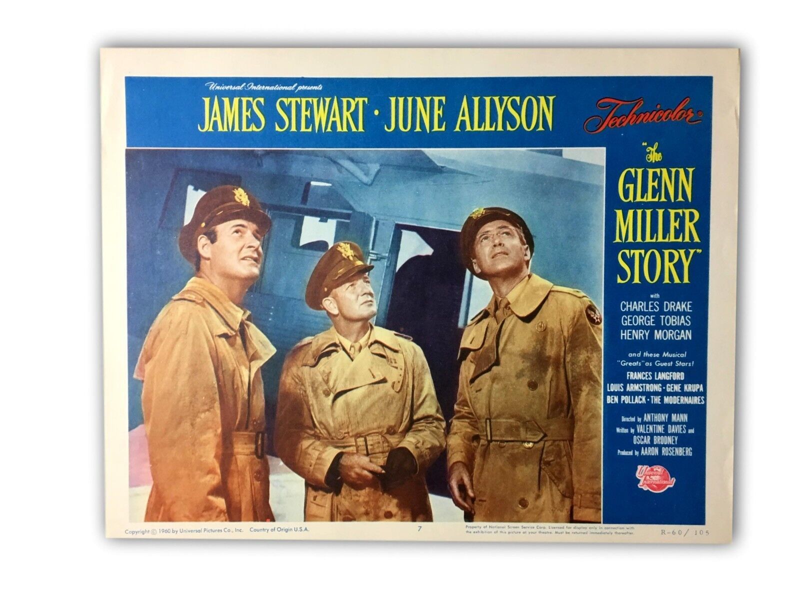 LOOKING FOR THE NEXT BIG THING TO ADD TO YOUR MEMORABILIA COLLECTION? WELL THIS IS IT! ldquo;THE GLENN MILLER STORY rdquo; STARRING: JAMES STEWART Copyrighted/Dated: 196011" X 14" in Size NOT A Bootleg or Reproduction - Guaranteed ORIGINAL THEATRICAL LOBBY CARD USED IN A MOVIE THEATRE AROUND TIME OF RELEASE OF THE MOVIE. CONDITION: Poster is in -Vintage Condition- and of investment quality. This ORIGINAL lobby card was used at a movie theatre. It may or may not have staple marks at corners, wrinkling, slight tears around edges, rounded corners, etc. from being originally displayed at a movie theatre or overtime natural wear. Colors and Detail are outstanding for this day amp; age, photos may not completely pick up high quality of coloring and inks until you see in hand. PLEASE MAKE YOUR PERSONAL ASSESSMENT OF THE CONDITION OF THIS POSTER FROM THE PHOTOS PROVIDED IN THE LISTING. The above condition issues are not exact for this poster so please take a look at the photos to determine the condition. MAKE SURE YOU CHECK OUT OUR OTHER ORIGNAL MOVIE POSTERS amp; LOBBY CARDS FROM THE 1930s AND ON IN OUR ONLINE SHOP! CHANCES ARE WE MAY HAVE MORE THAN ONE LOBBY CARD FROM THE SAME MOVIE OR EVEN A COMPLETE SET AVAILABLE. WE HAVE MANY TITLE CARDS AVAILABLE AS WELL AS KEY SCENES FROM ICONIC MOVIES ON HAND!! CHECK THEM OUT. Thanks for looking. We ship our items very protected and secure to make sure the item(s) make it to you safely!!