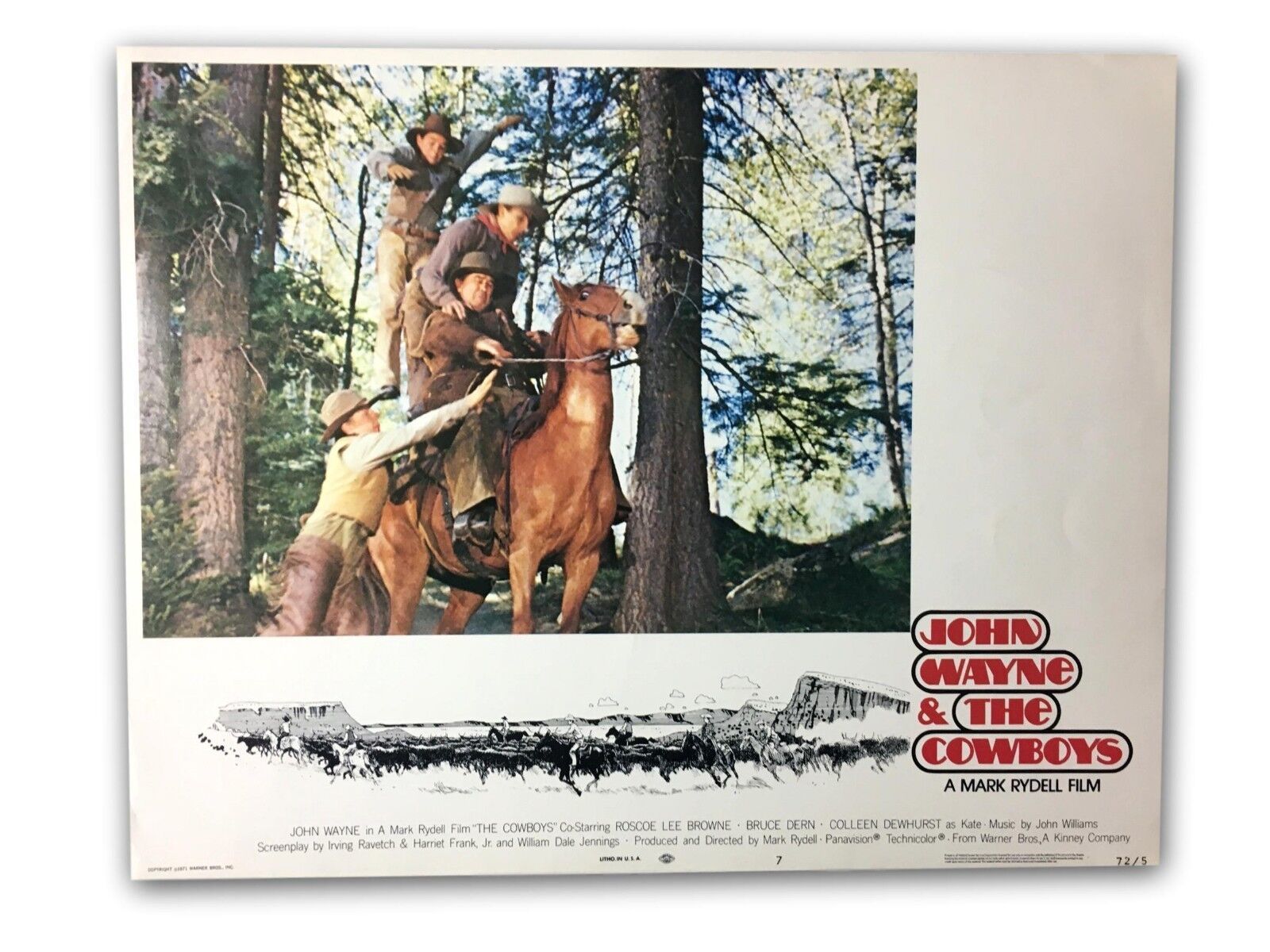 LOOKING FOR THE NEXT BIG THING TO ADD TO YOUR MEMORABILIA COLLECTION? WELL THIS IS IT! ldquo;THE COWBOYS rdquo; STARRING: JOHN WAYNE amp; ROSCOE BROWNE Copyrighted/Dated: 197211" X 14" in Size NOT A Bootleg or Reproduction - Guaranteed ORIGINAL THEATRICAL LOBBY CARD USED IN A MOVIE THEATRE AROUND TIME OF RELEASE OF THE MOVIE. CONDITION: Poster is in -Vintage Condition- and of investment quality. This ORIGINAL lobby card was used at a movie theatre. It may or may not have staple marks at corners, wrinkling, slight tears around edges, rounded corners, etc. from being originally displayed at a movie theatre or overtime natural wear. Colors and Detail are outstanding for this day amp; age, photos may not completely pick up high quality of coloring and inks until you see in hand. PLEASE MAKE YOUR PERSONAL ASSESSMENT OF THE CONDITION OF THIS POSTER FROM THE PHOTOS PROVIDED IN THE LISTING. The above condition issues are not exact for this poster so please take a look at the photos to determine the condition. MAKE SURE YOU CHECK OUT OUR OTHER ORIGNAL MOVIE POSTERS amp; LOBBY CARDS FROM THE 1930s AND ON IN OUR ONLINE SHOP! CHANCES ARE WE MAY HAVE MORE THAN ONE LOBBY CARD FROM THE SAME MOVIE OR EVEN A COMPLETE SET AVAILABLE. WE HAVE MANY TITLE CARDS AVAILABLE AS WELL AS KEY SCENES FROM ICONIC MOVIES ON HAND!! CHECK THEM OUT. Thanks for looking. We ship our items very protected and secure to make sure the item(s) make it to you safely!!