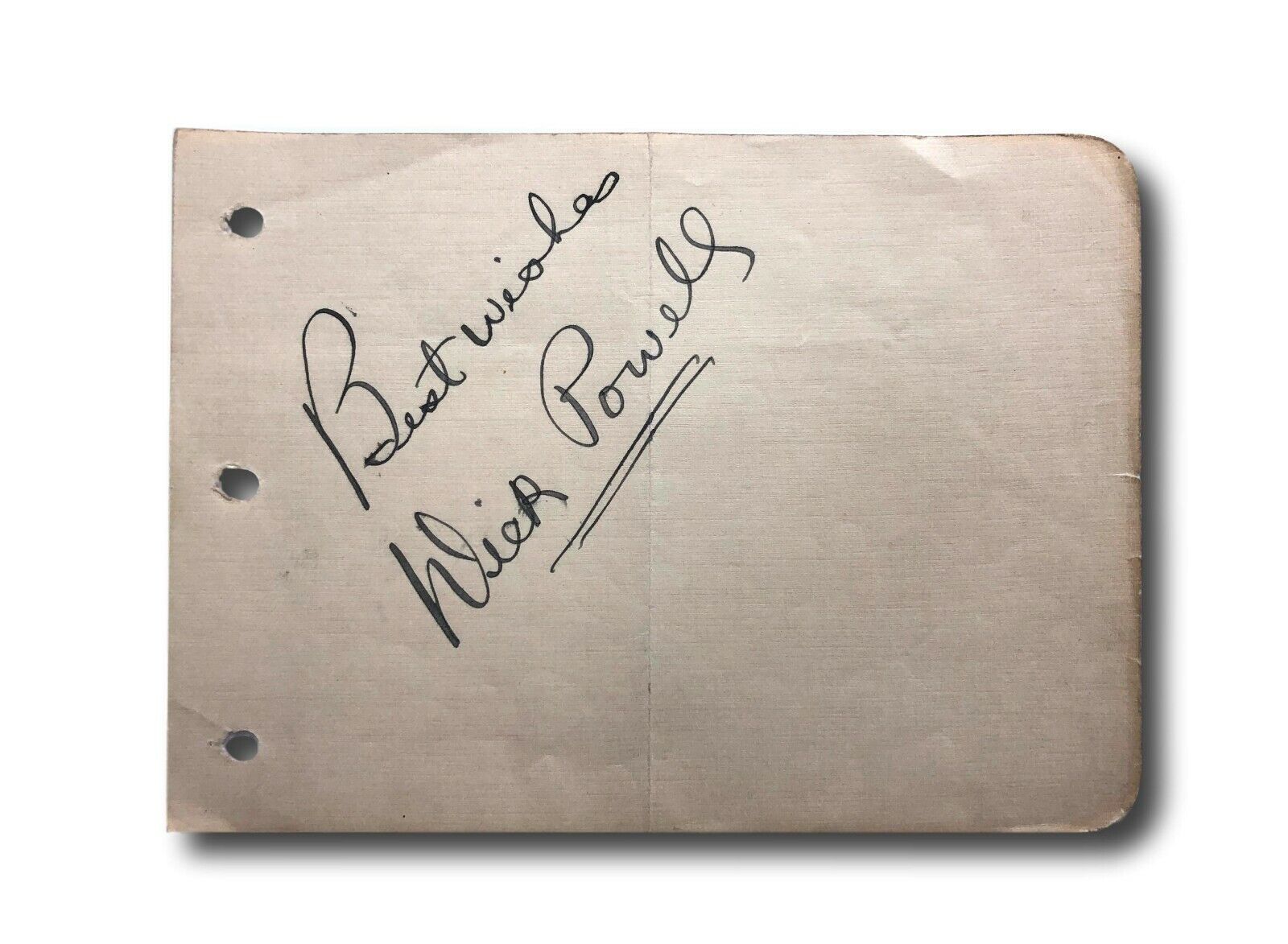 LOOKING FOR THE NEXT GREAT ITEM TO ADD TO YOUR MEMORABILIA COLLECTION? WELL THIS IS IT!! ITEM: DICK POWELL HAND SIGNED ALBUM PAGE!!! THIS PINK ALBUM PAGE MEASURES APPROX. 4.5" X 6" IN SIZE. THIS IS A MUST HAVE ITEM FOR ALL FANS OF THE ICON!! AUTOGRAPHS OF HIS ARE VERY DIFFICULT TO COME BY AS HE DIED WAY BACK IN 1963! CERTIFICATE OF AUTHENTICITY: THIS AUTOGRAPH IS CERTIFIED AUTHENTIC BY JAMES SPENCE AUTHENTICATION (JSA), ONE OF THE LARGEST amp; MOST REPUTABLE AUTHENTICATORS IN THE INDUSTRY. THIS PIECE INCLUDES THE JSA TAMPER PROOF AUTHENTICATION STICKER ON BACK OF THE ITEM, AND IDENTIFICATION CARD DIRECTLY FROM THEM, WHICH CAN ALSO BE ACCESSED ANYTIME/ANYWHERE ON THEIR ONLINE DATABASE ON THEIR WEBSITE.