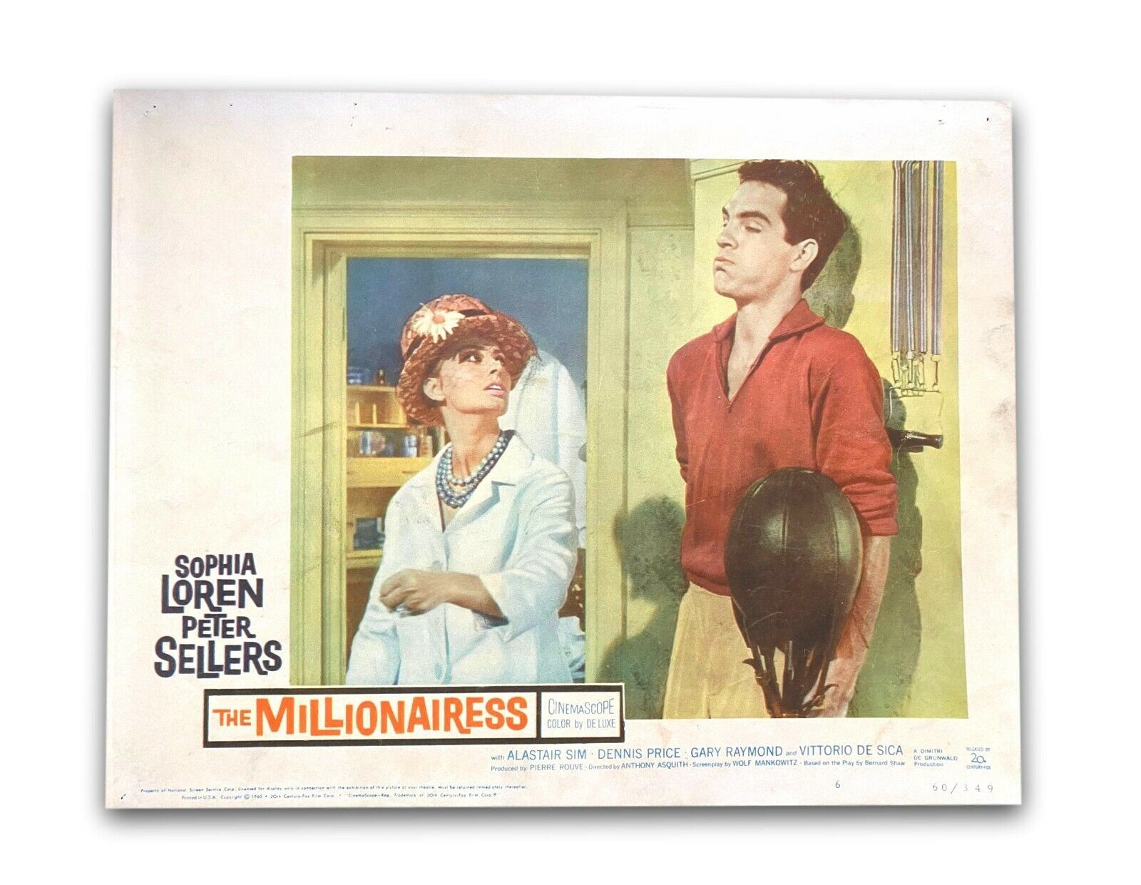LOOKING FOR THE NEXT BIG THING TO ADD TO YOUR MEMORABILIA COLLECTION? WELL THIS IS IT! ldquo;THE MILLIONAIRESS rdquo; STARRING: SOPHIA LOREN amp; PETER SELLERS Copyrighted/Dated: 1960 11" X 14" in Size NOT A Bootleg or Reproduction - Guaranteed ORIGINAL THEATRICAL LOBBY CARD USED IN A MOVIE THEATRE AROUND TIME OF RELEASE OF THE MOVIE. CONDITION: Poster is in -Vintage Condition- and of investment quality. This ORIGINAL lobby card was used at a movie theatre. It may or may not have staple marks at corners, wrinkling, slight tears around edges, rounded corners, etc. from being originally displayed at a movie theatre or overtime natural wear. Colors and Detail are outstanding for this day amp; age, photos may not completely pick up high quality of coloring and inks until you see in hand. PLEASE MAKE YOUR PERSONAL ASSESSMENT OF THE CONDITION OF THIS POSTER FROM THE PHOTOS PROVIDED IN THE LISTING. The above condition issues are not exact for this poster so please take a look at the photos to determine the condition. MAKE SURE YOU CHECK OUT OUR OTHER ORIGNAL MOVIE POSTERS amp; LOBBY CARDS FROM THE 1930s AND ON IN OUR ONLINE SHOP! CHANCES ARE WE MAY HAVE MORE THAN ONE LOBBY CARD FROM THE SAME MOVIE OR EVEN A COMPLETE SET AVAILABLE. WE HAVE MANY TITLE CARDS AVAILABLE AS WELL AS KEY SCENES FROM ICONIC MOVIES ON HAND!! CHECK THEM OUT. Thanks for looking. We ship our items very protected and secure to make sure the item(s) make it to you safely!!