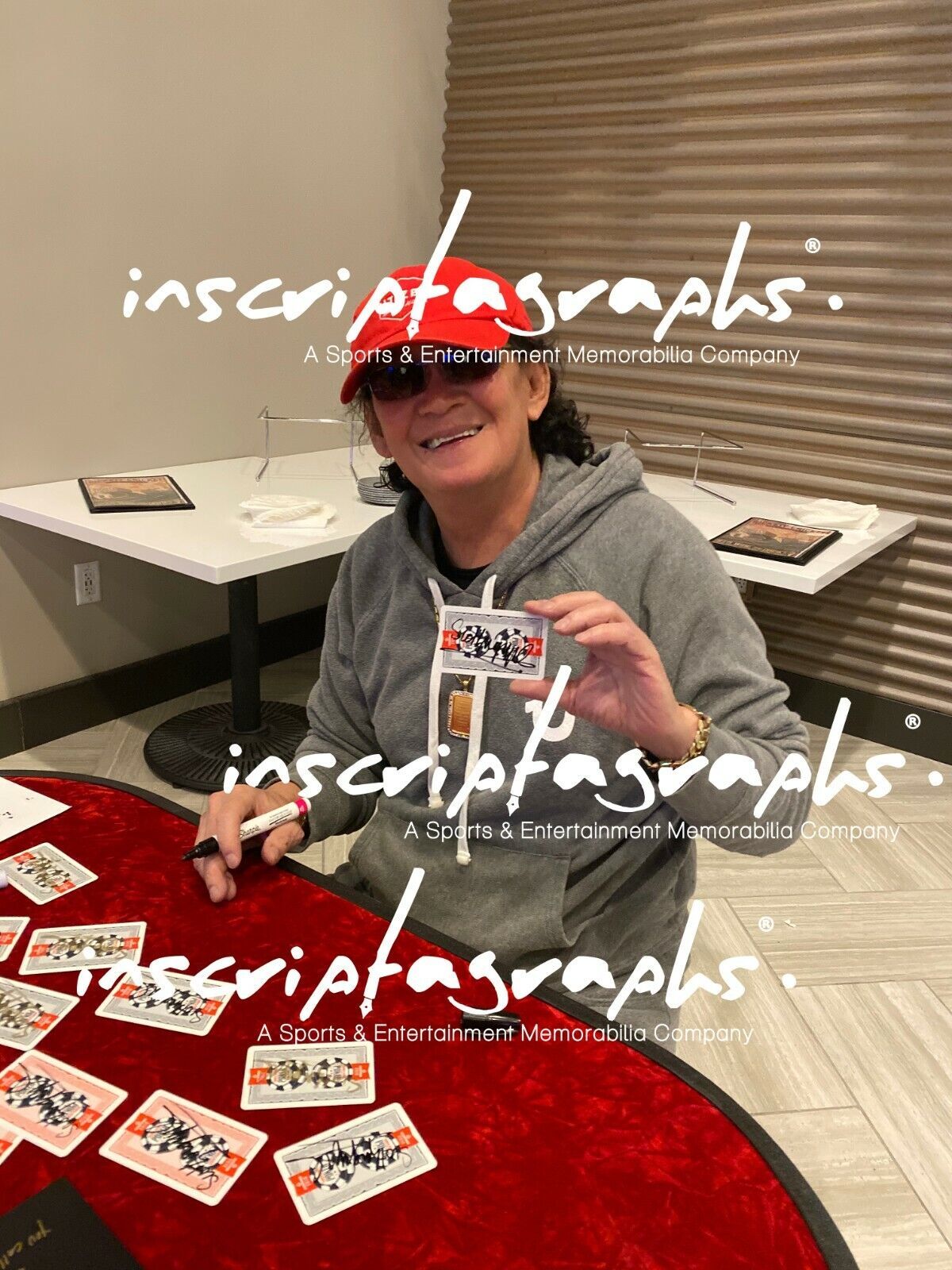 Our company has an exclusive memorabilia contract in place with Scotty so our company, Inscriptagraphs memorabilia, is the only place that carries his exclusive line of autographs and poker event used memorabilia!! Shop directly from Scotty Nguyen through our company to guarantee you are receiving the real thing, guaranteed!! This item was signed by Scotty at our private signing with him in Las Vegas on December 7, 2019!! The 1 signed card in each deck comes with a Certificate of Authenticity from our company and guaranteed to be authentic!! Check out the photo of Scotty holding his authentic memorabilia items in the photos of this listing!