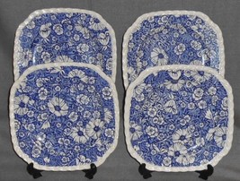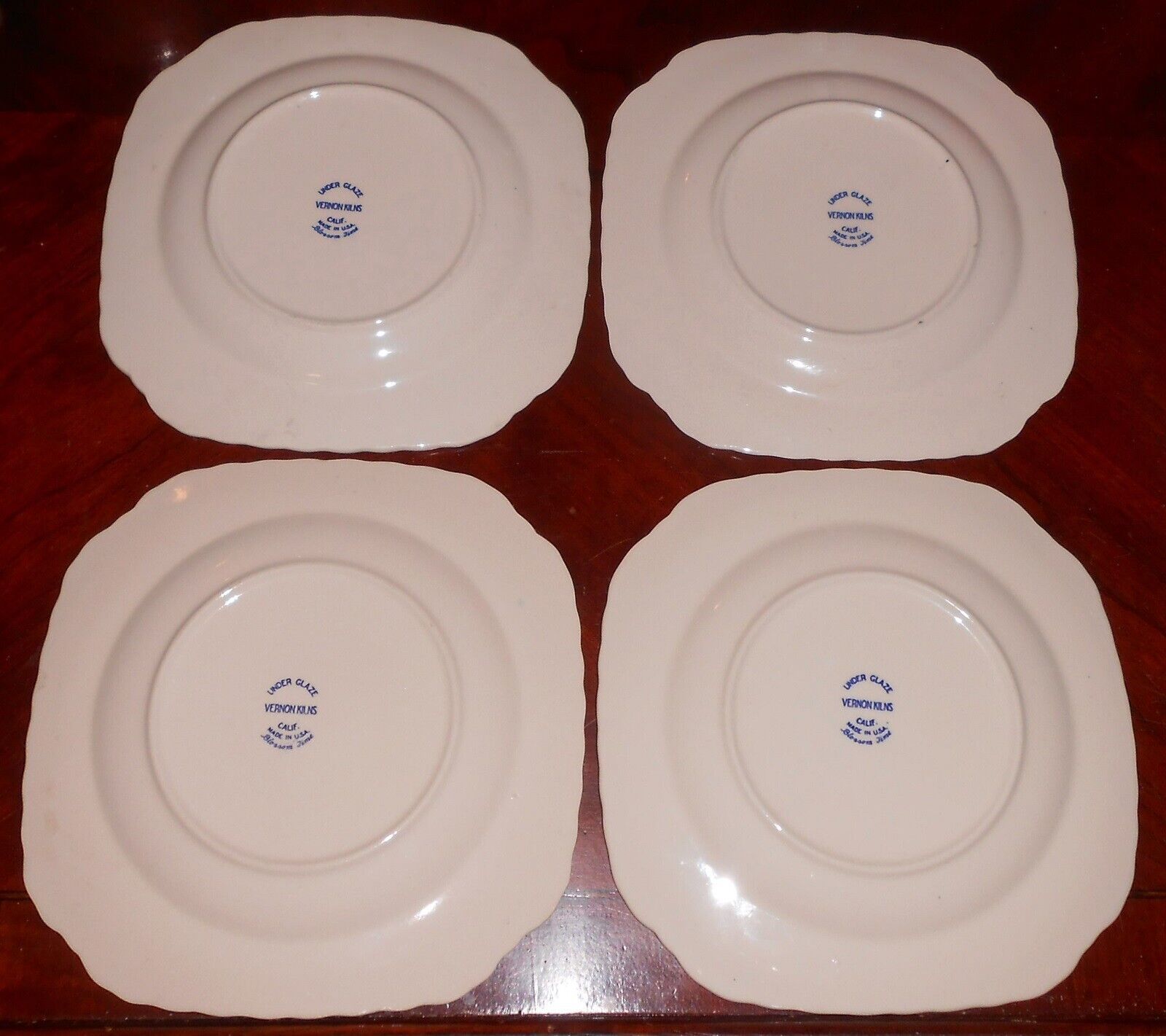 Set (4) 1940s Vernon Kilns BLOSSOM TIME PATTERN Square Salad Plates CALIFORNIA