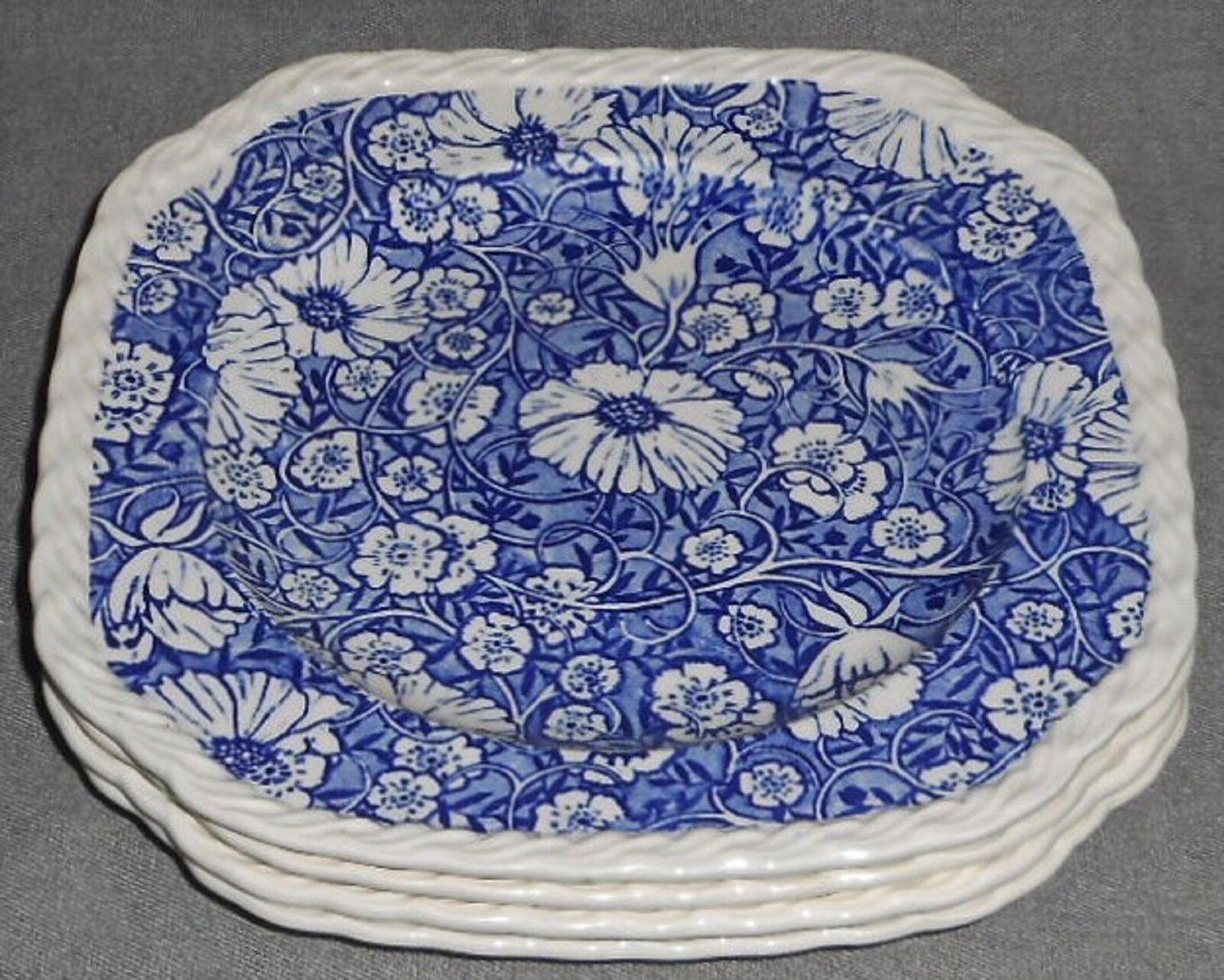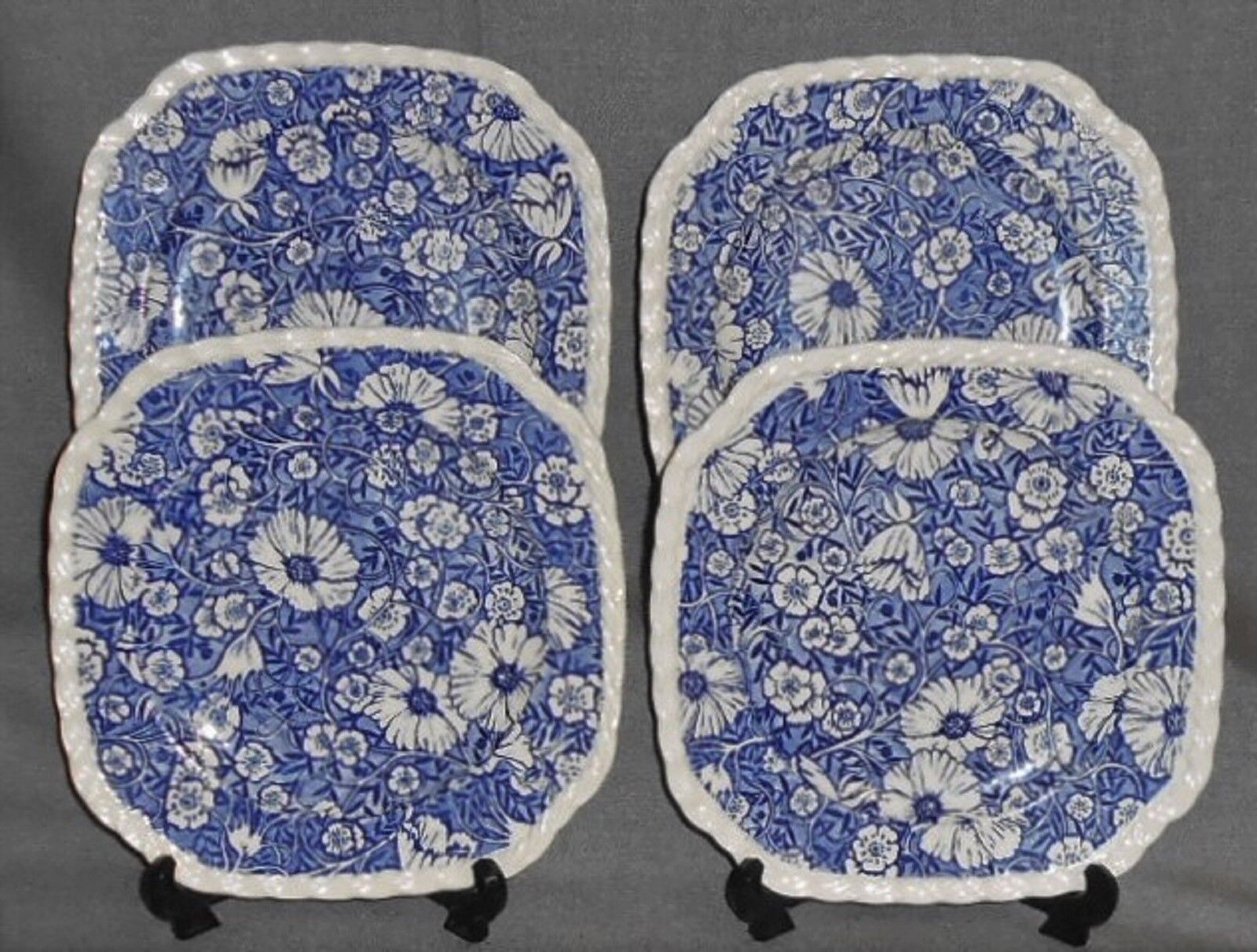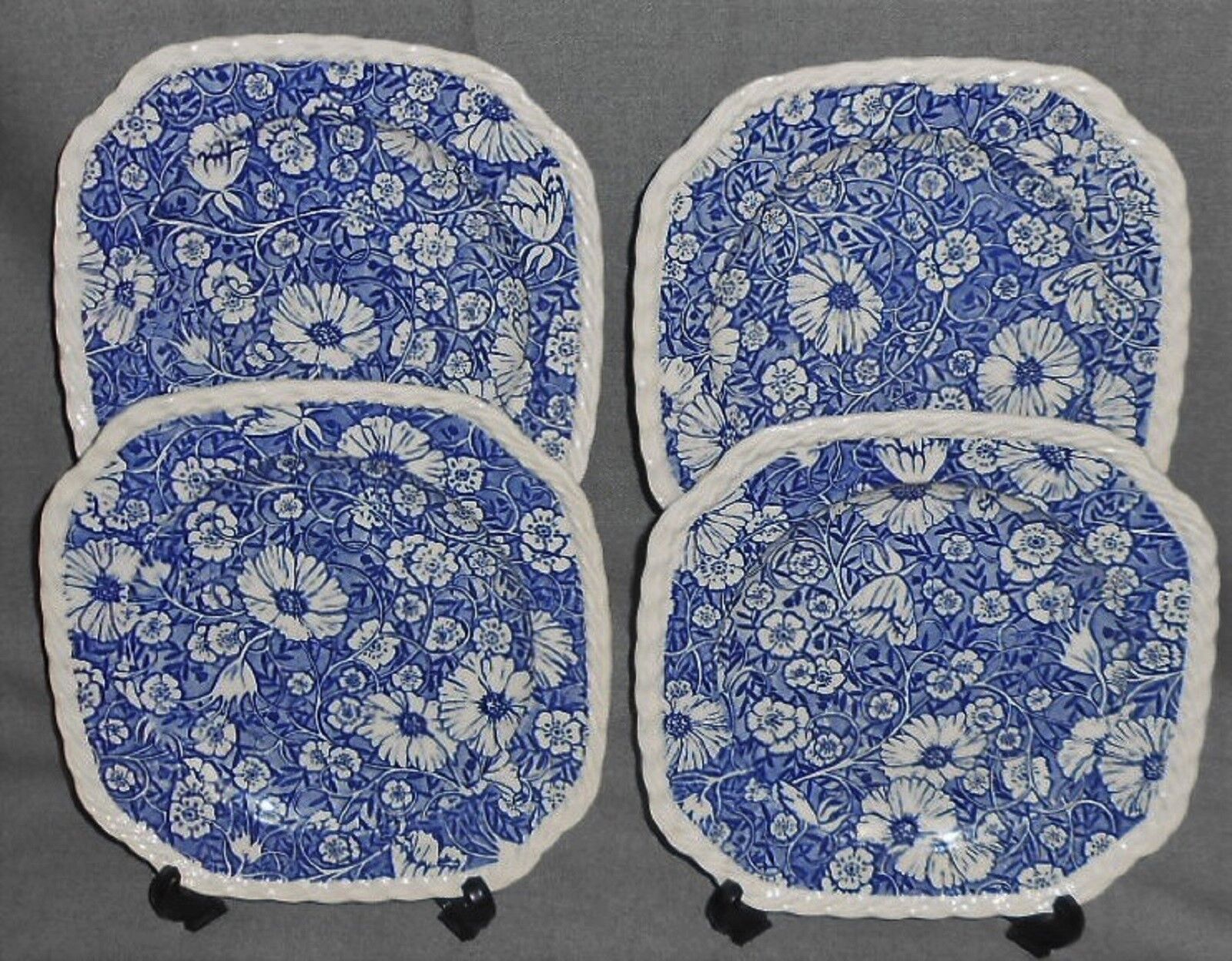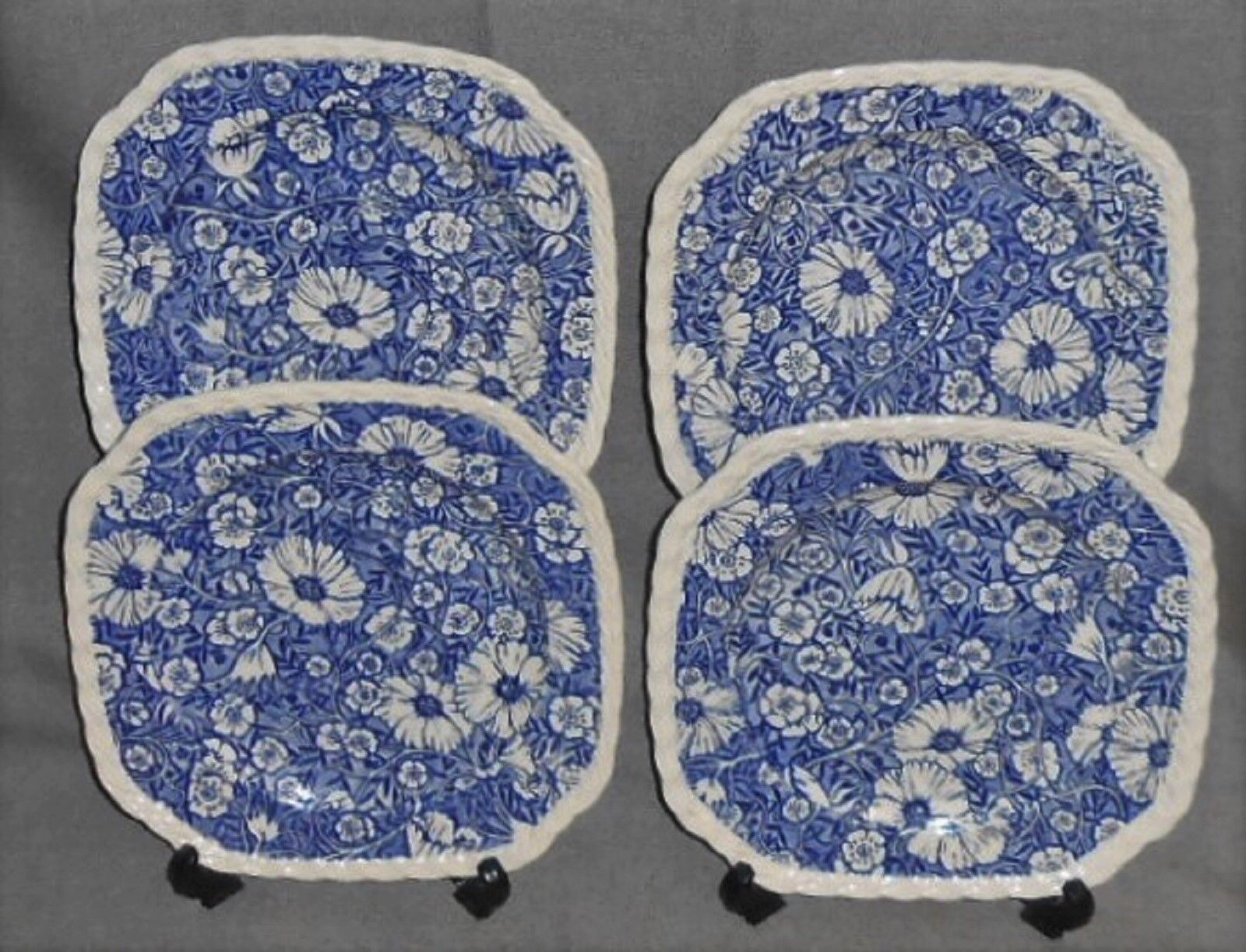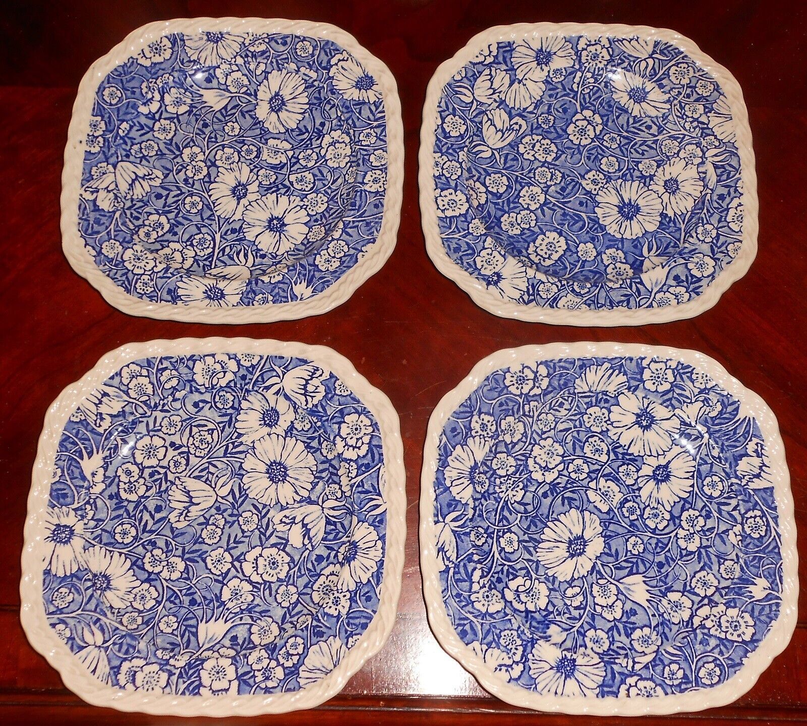 This is a Rare Set of (4) 1940s Rope Edged Square Salad Plates that measure 8" x 8" from Vernon Kilns in the All Over Chintz Blossom Time Pattern - Made in California. They are all in good pre-owned condition with no chips or damage.
