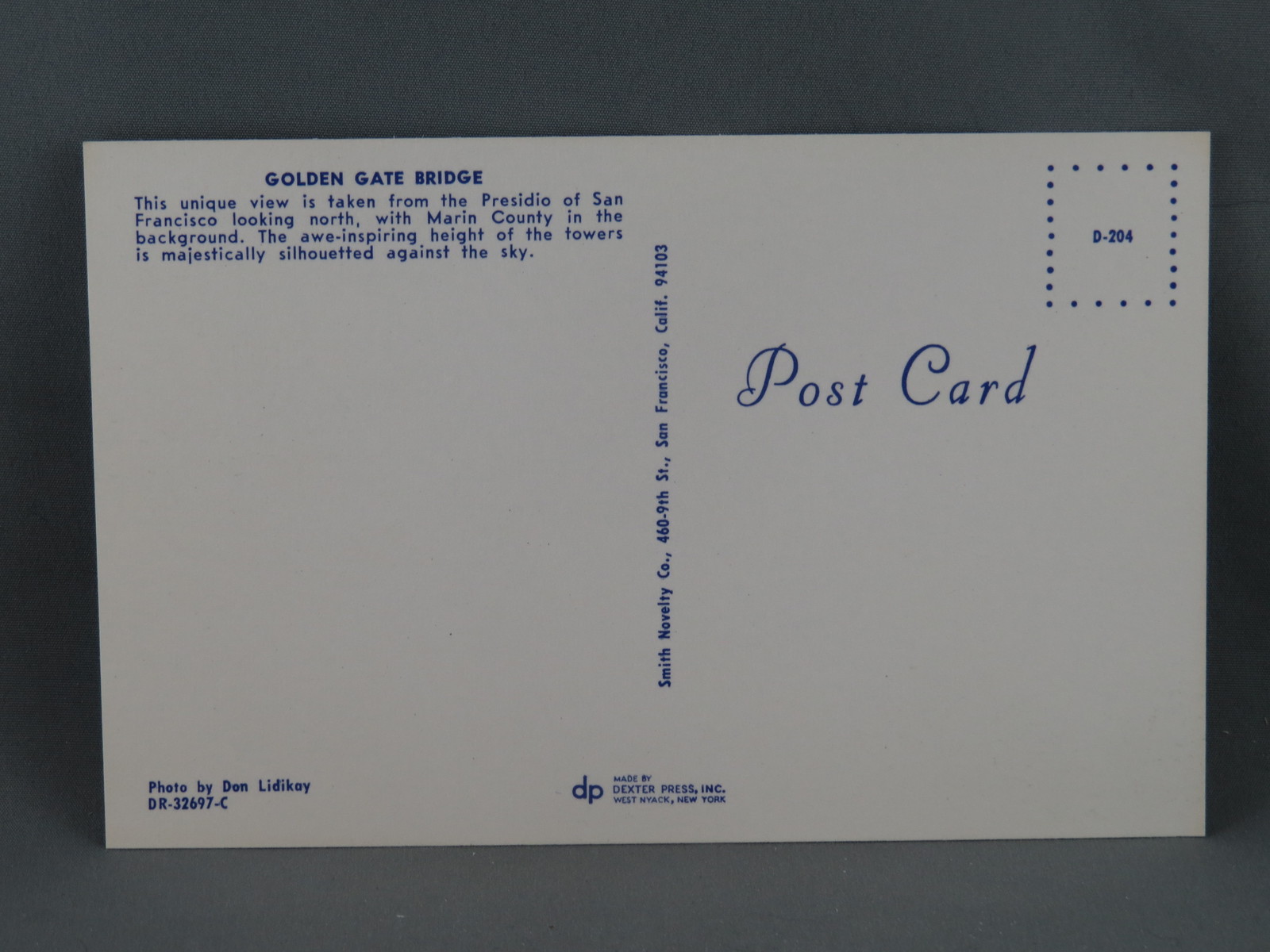 Vintage Postcard - Golden Gate Bridge Presidio View - Dexter Press