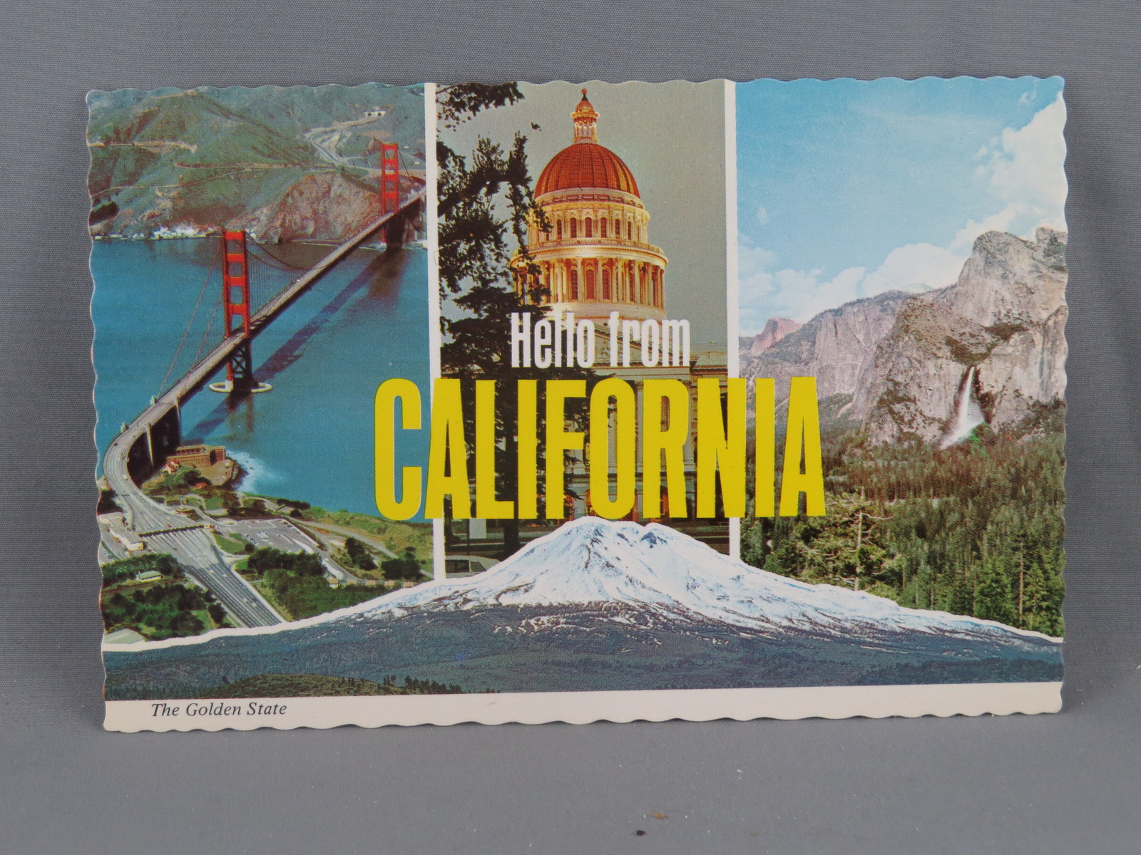Up for sale is a vintage postcard. It features 4 images of major attractions from California with hello from California printed across the top of the card. What a great addition to any collection.