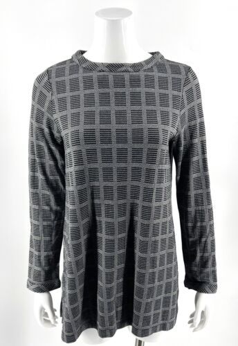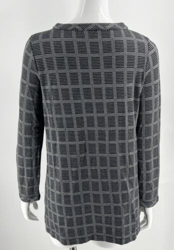 J Jill Wearever Collection Tunic Top Size S Black Gray Checkered Long Sleeve