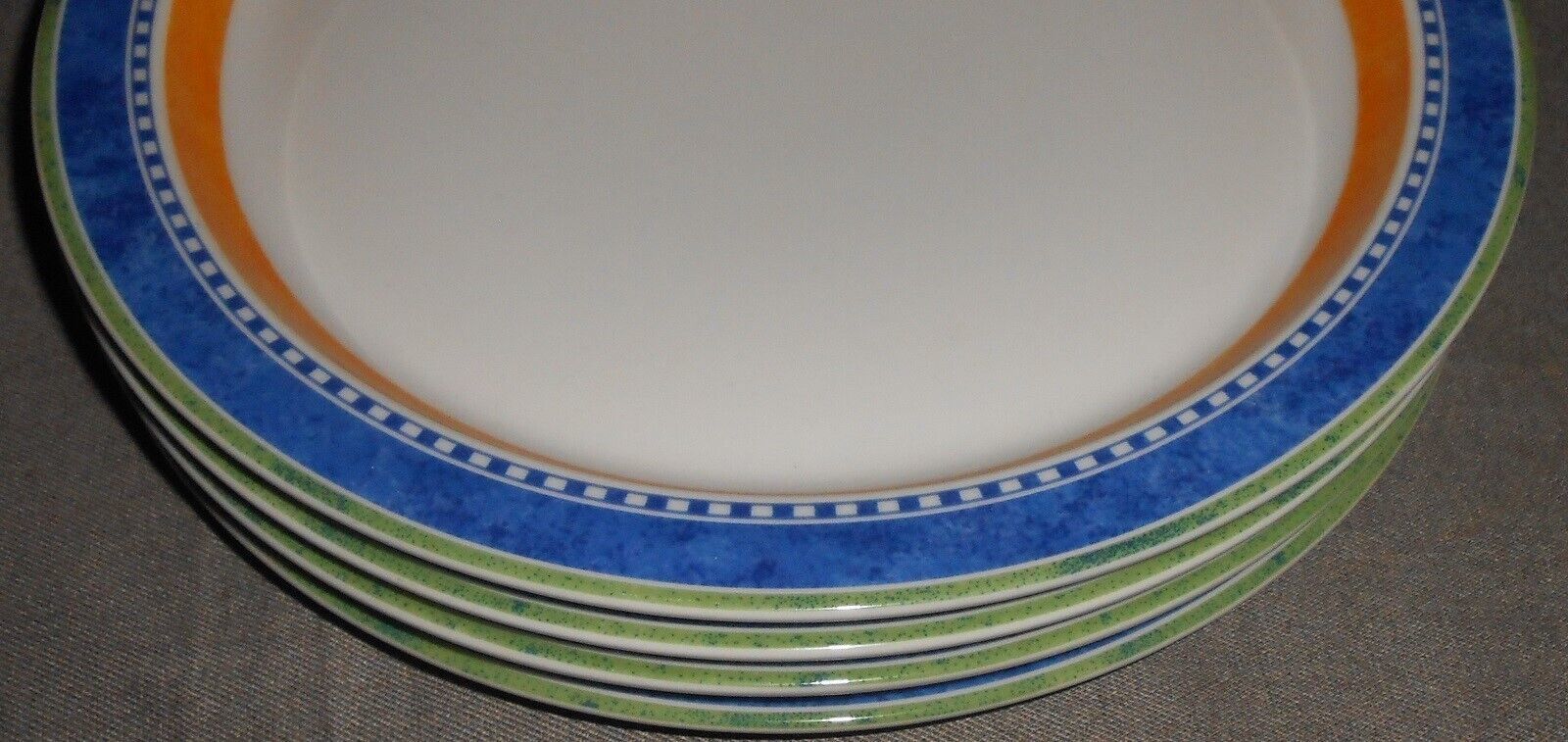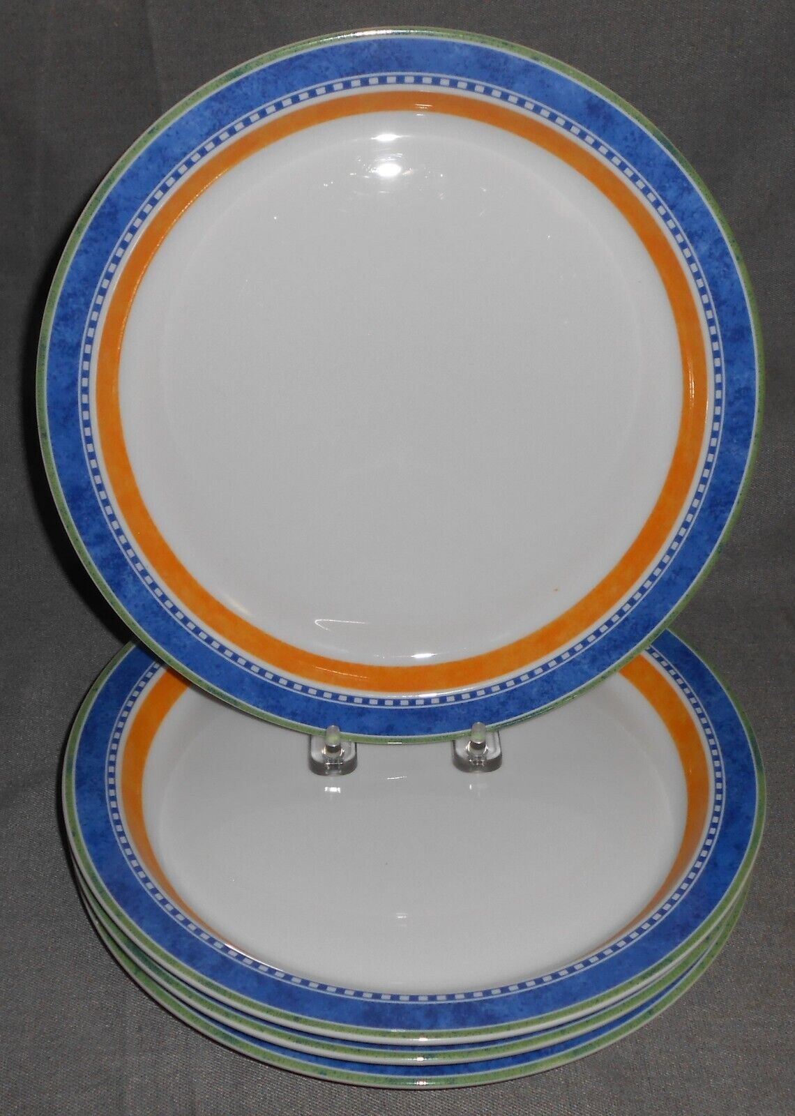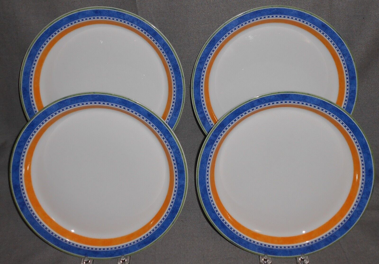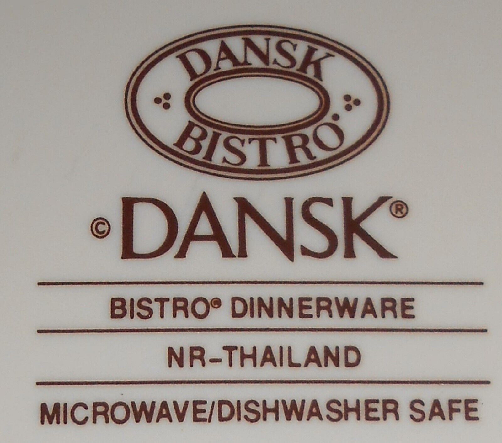This is a Set of (4) 10 1/2" Dinner Plates from Dansk Bistro in the Kobenhavn Pattern and Made in Thailand. They are all in good pre-owned condition with no chips or cracks.