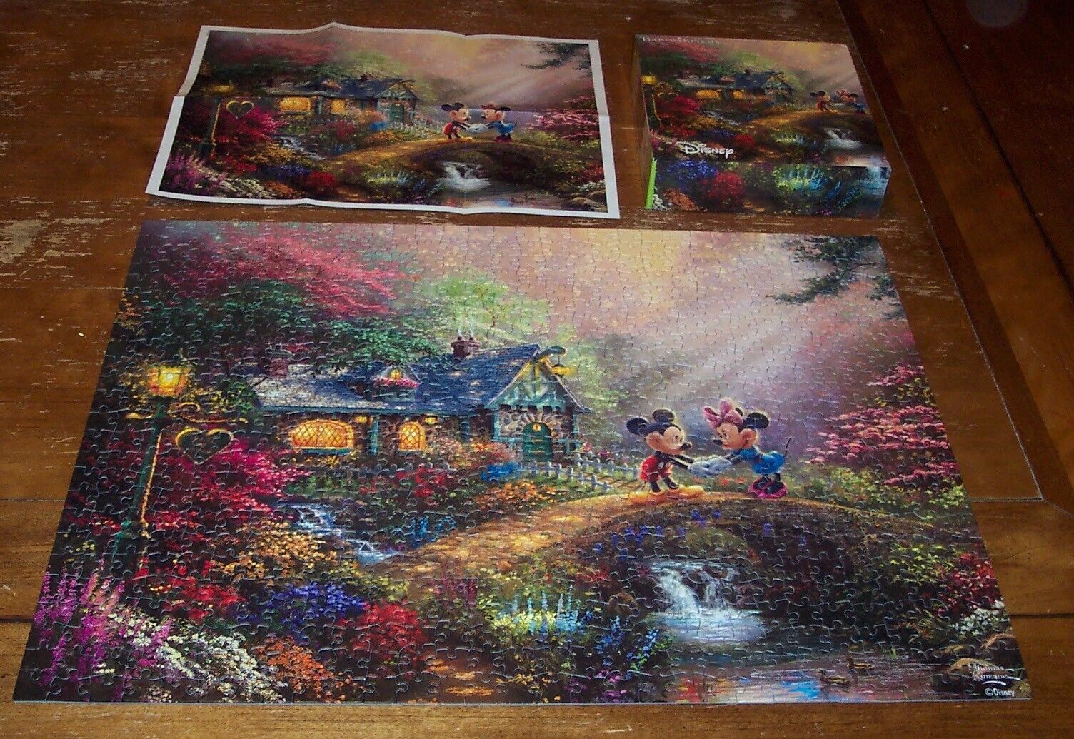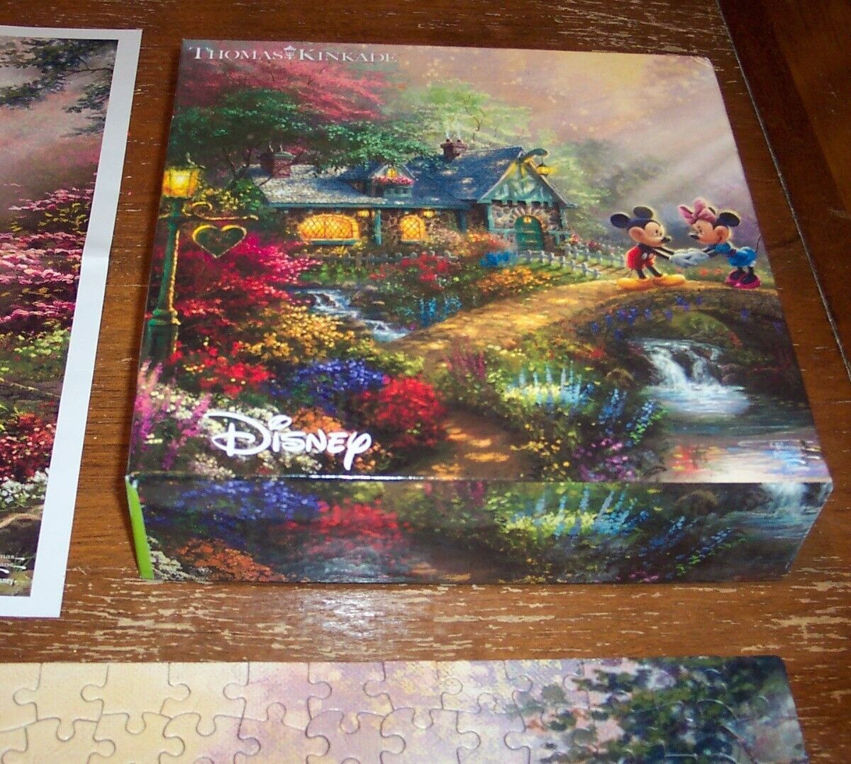 This is a WALT DISNEY THOMAS KINKADE Mickey and Minnie Mouse JIGSAW PUZZLE 750 Pieces. Made by CEACO in 2017. It is complete and is in the original box, and is in great condition in original box. It comes with a bonus poster of the picture! It helps while putting the puzzle together. AG