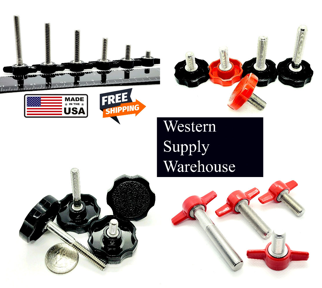 3/8" x 1 1/4" Thumb Screws Bolts Black Round Hex Clamping Knob Stainless Steel