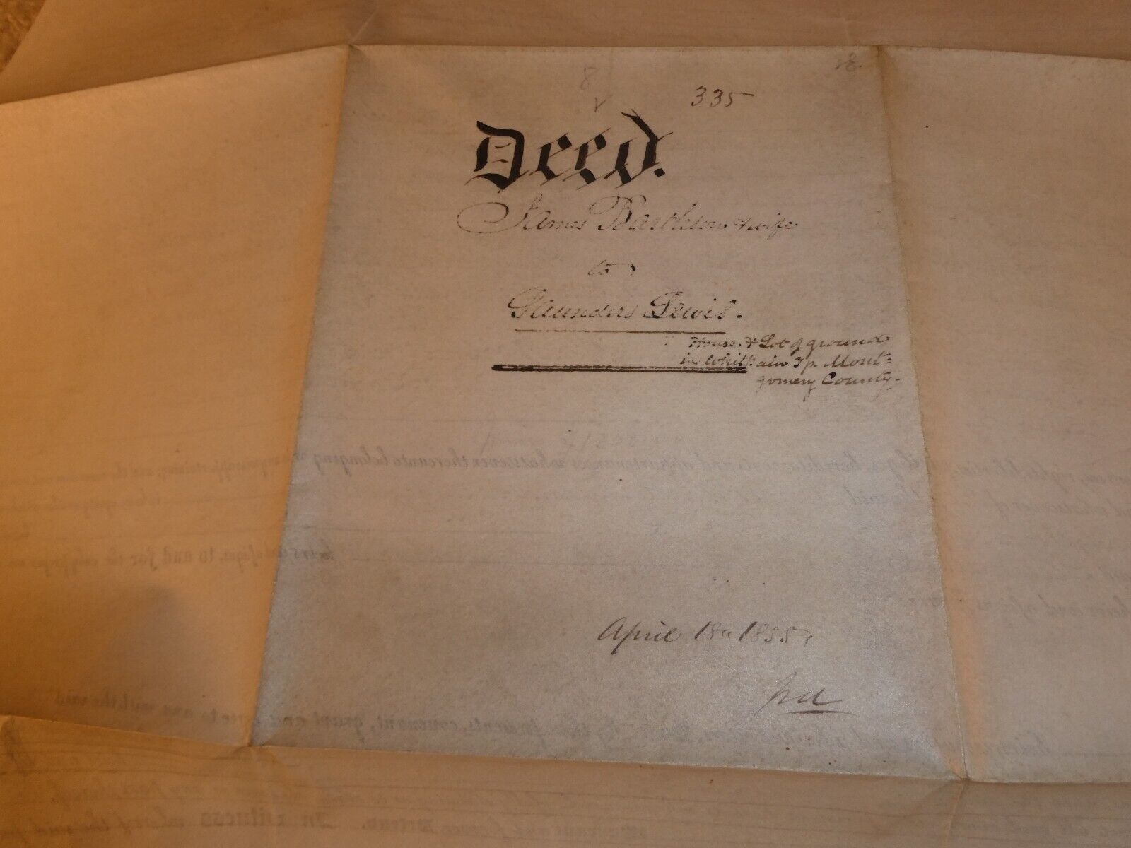 Original 1854 Indenture Deed Document Land Sale Montgomery County Pennsylvania