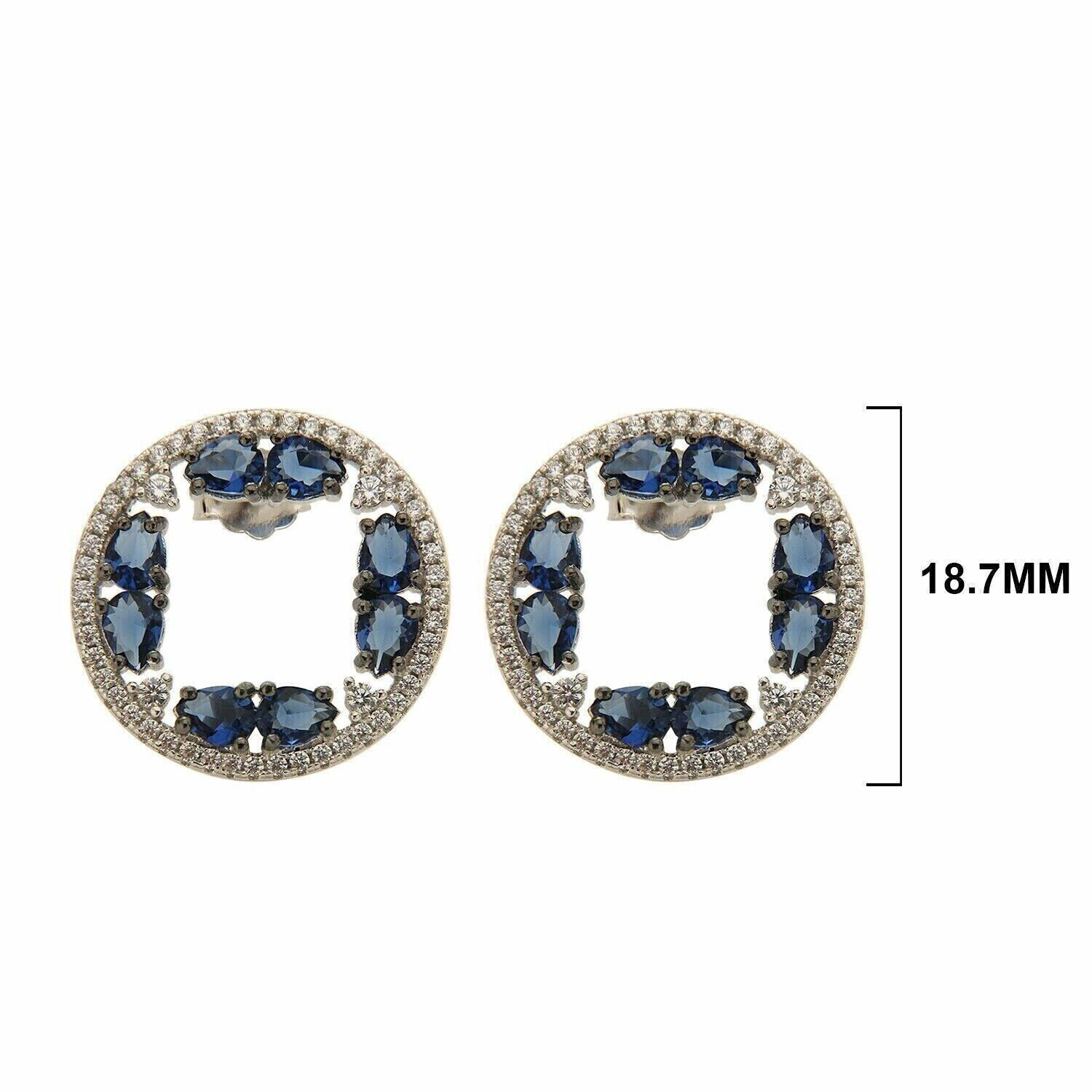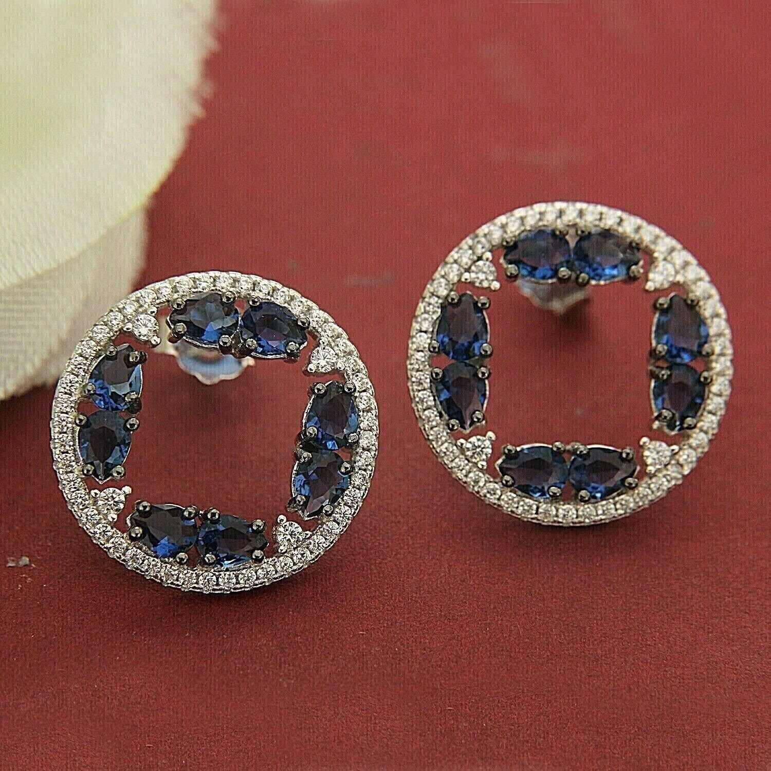 2.5Ct Pear Cut CZ Blue Sapphire Round Fancy Stud Earring 14k White Gold Plated