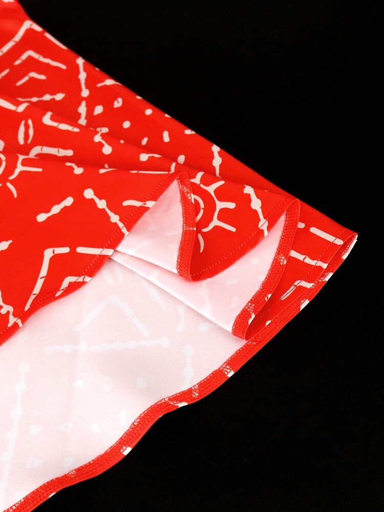 Mermaid Printed Dresses Women V Neck Long Lantern Sleeve Red High Waist Women Ev