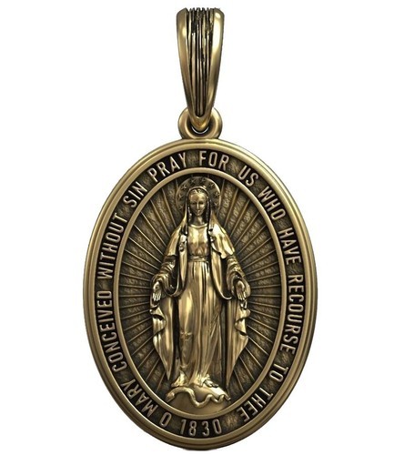 Holy Mother Virgin Mary Charm 25x13mm (1x0.5in) Oval Medal Pendant in .925 Sterling Silver