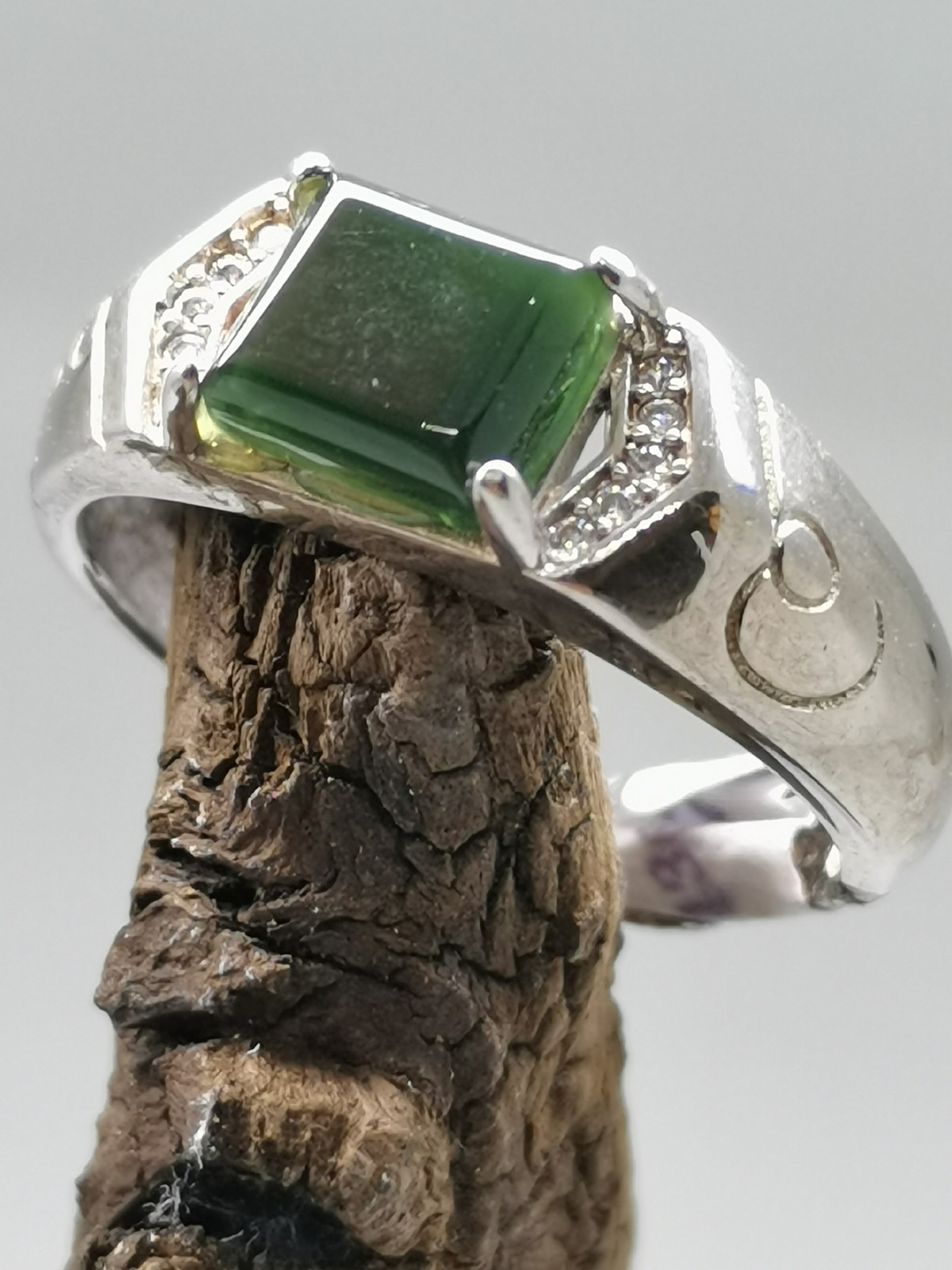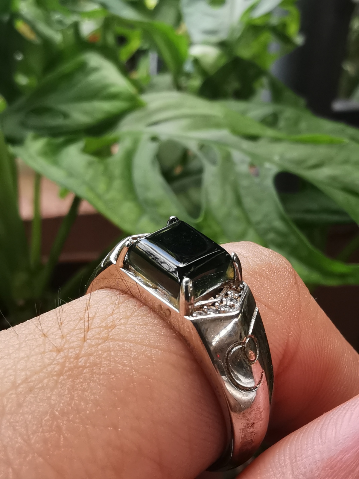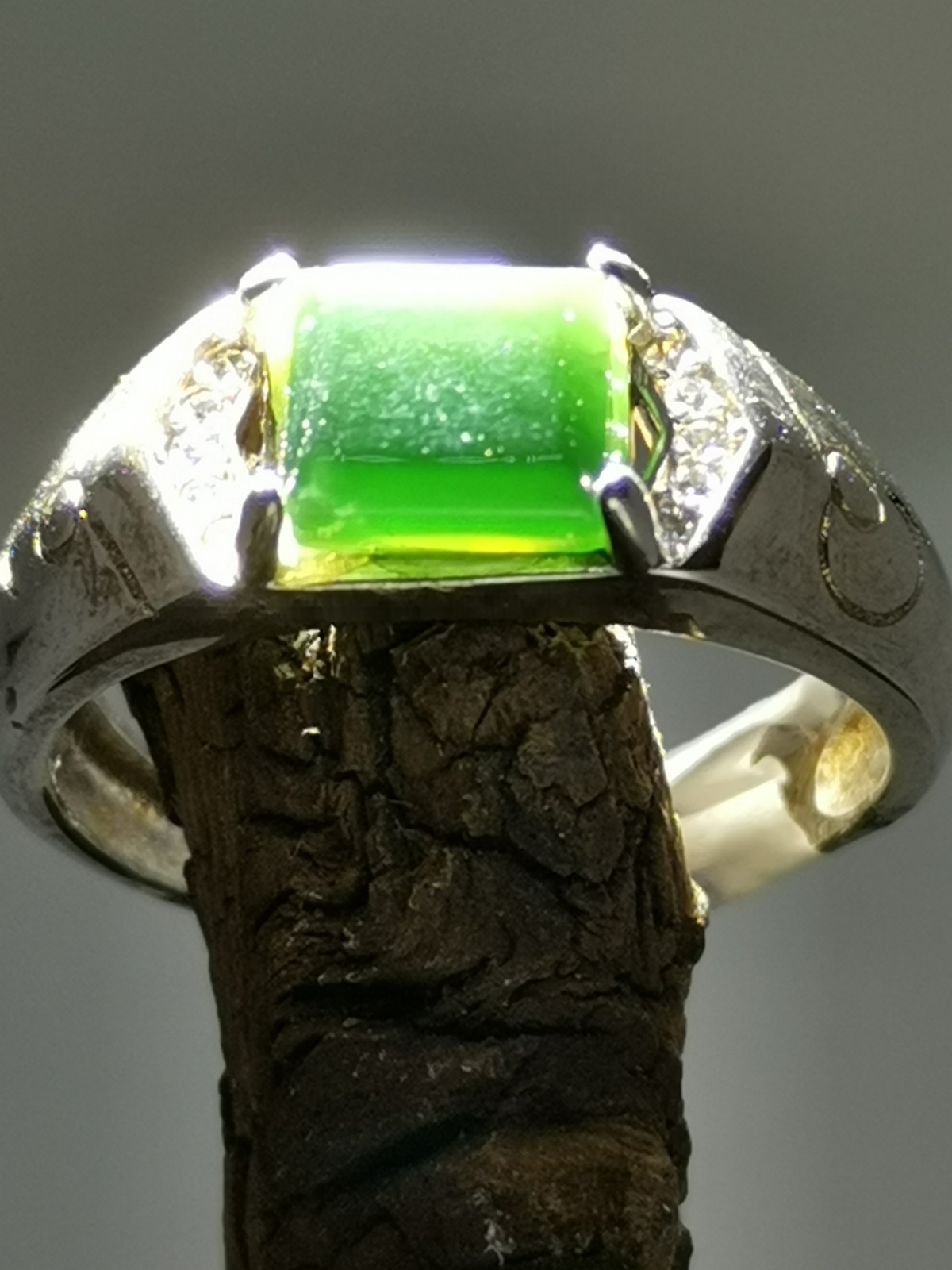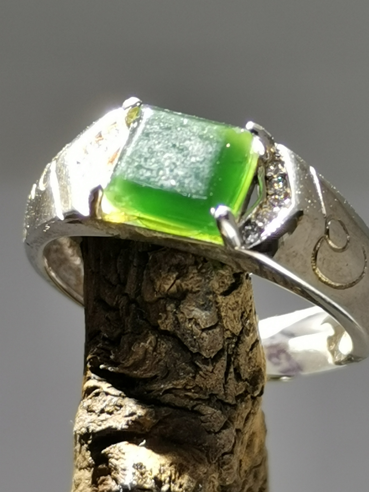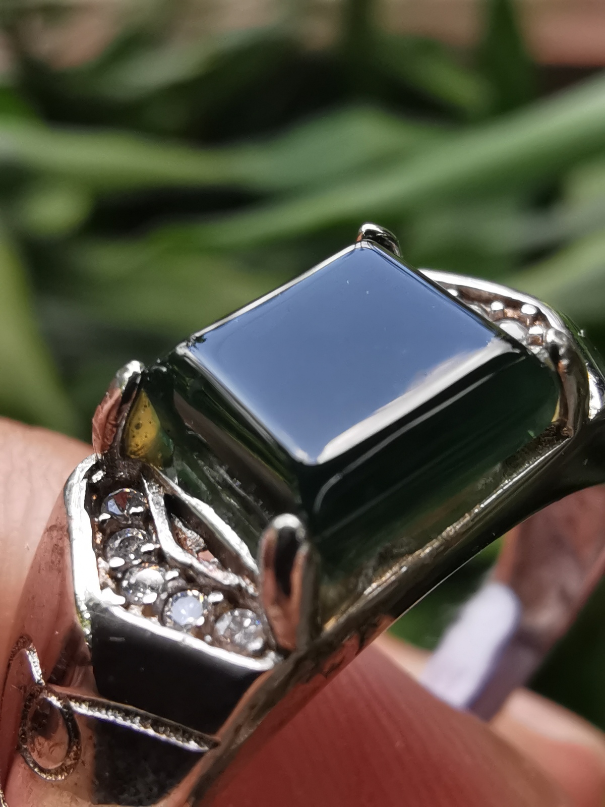 This exceptional ring is a naturally occurring icy-black Burmese jadeite set in 925 sterling silver, belonging to the highly rare category of natural black gemstone-grade jadeite. Its unique beauty is certified by an authenticity certificate (Type A Natural Jadeite), instilling a high level of trust in the collector. The dimensions of this jadeite's ring face are approximately 7.00mm/6.30mm/3.50mm, presenting an enchanting deep black color, showcasing the distinctive characteristics of ice jadeite. What sets this ice jadeite apart is the contrast between its surface's glossy jet-black and the jadeite's translucent sunny-green, creating an aura of mystique. This interplay of contrasts, akin to a natural marvel, captivates the beholder. This jadeite ring is not just a piece of exquisite jewelry; it is a collectible rich in meaning. In Eastern culture, jadeite has long been considered a stone of good fortune, and ice jadeite, with its profound black hue, is associated with symbols of mystery. The mysterious ambiance conveyed by its black tones, combined with the sunny-green of jadeite, symbolizes life's unpredictability and its journey full of variables. Furthermore, ice jadeite is imbued with the symbolism of warding off evil and disaster, bringing peace and protection to the wearer. This naturally occurring icy black Burmese jadeite ring is cherished not only for its exceptional craftsmanship but also for its unique color and symbolism, making it a treasure in the collector's heart. Whether through its distinctive color or the cultural symbolism it carries, this icy black Burmese jadeite ring will undoubtedly become a gem in your collection, possessing outstanding collectible value and conveying a profound pursuit of life's mysteries and beauty.