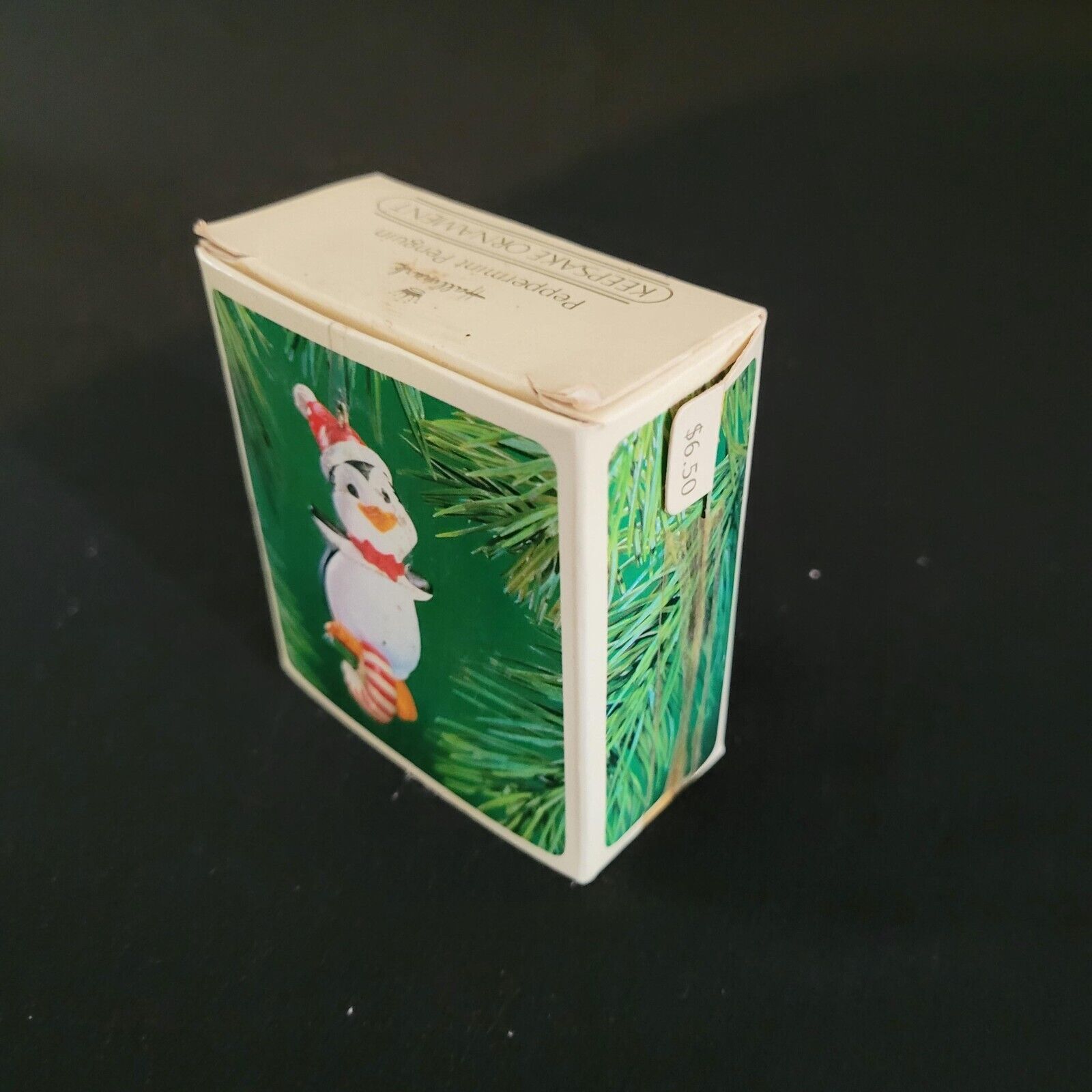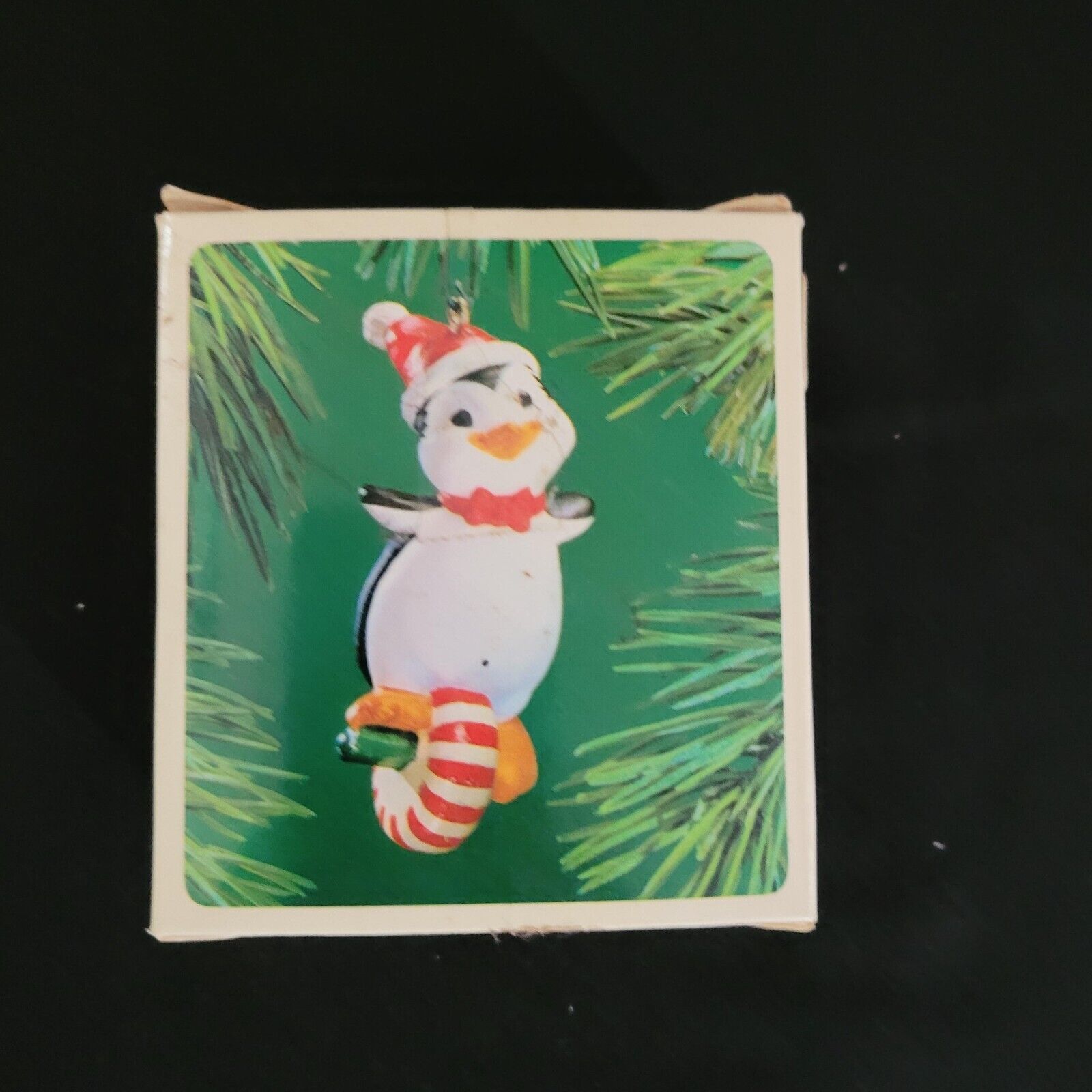 Vintage 1983 Hallmark Keepsake Ornament Peppermint Penguin Santa Hat Candy Wheel