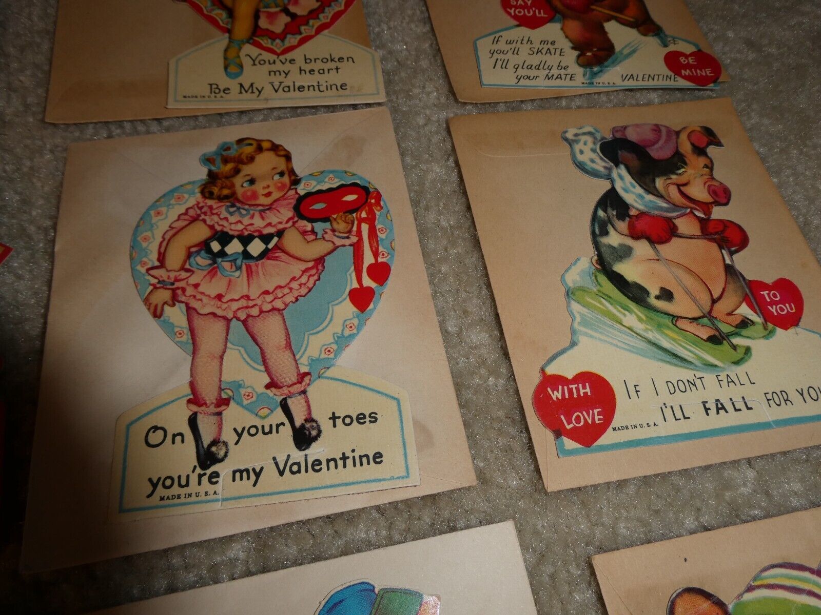 Lot of 15 Antique 1920-1930s Children Stan Up Valentine's Day Cards Unused w/ En