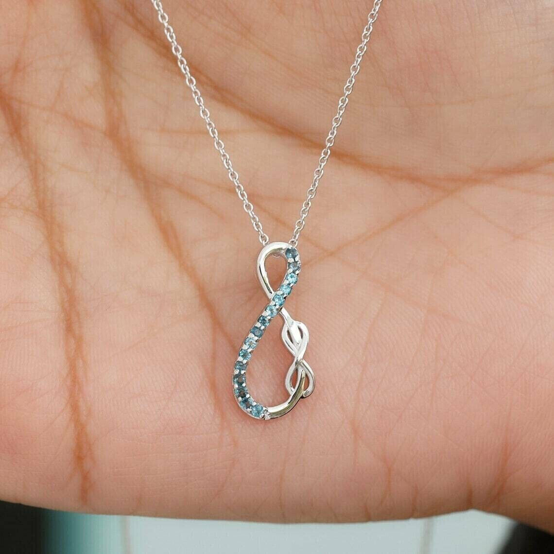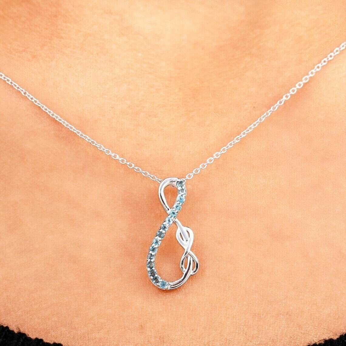 1.50Ct Round Cut CZ Topaz Infinity Pendant 14K White Gold Plated 18"FreeChain