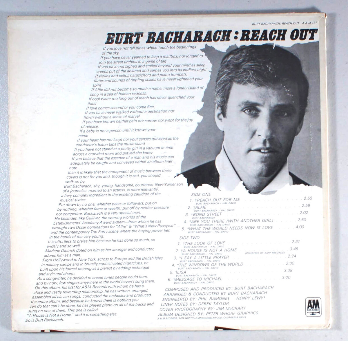 Burt Bacharach - Reach Out (1967) Vinyl LP Best of, Alfie, Say a Little Prayer