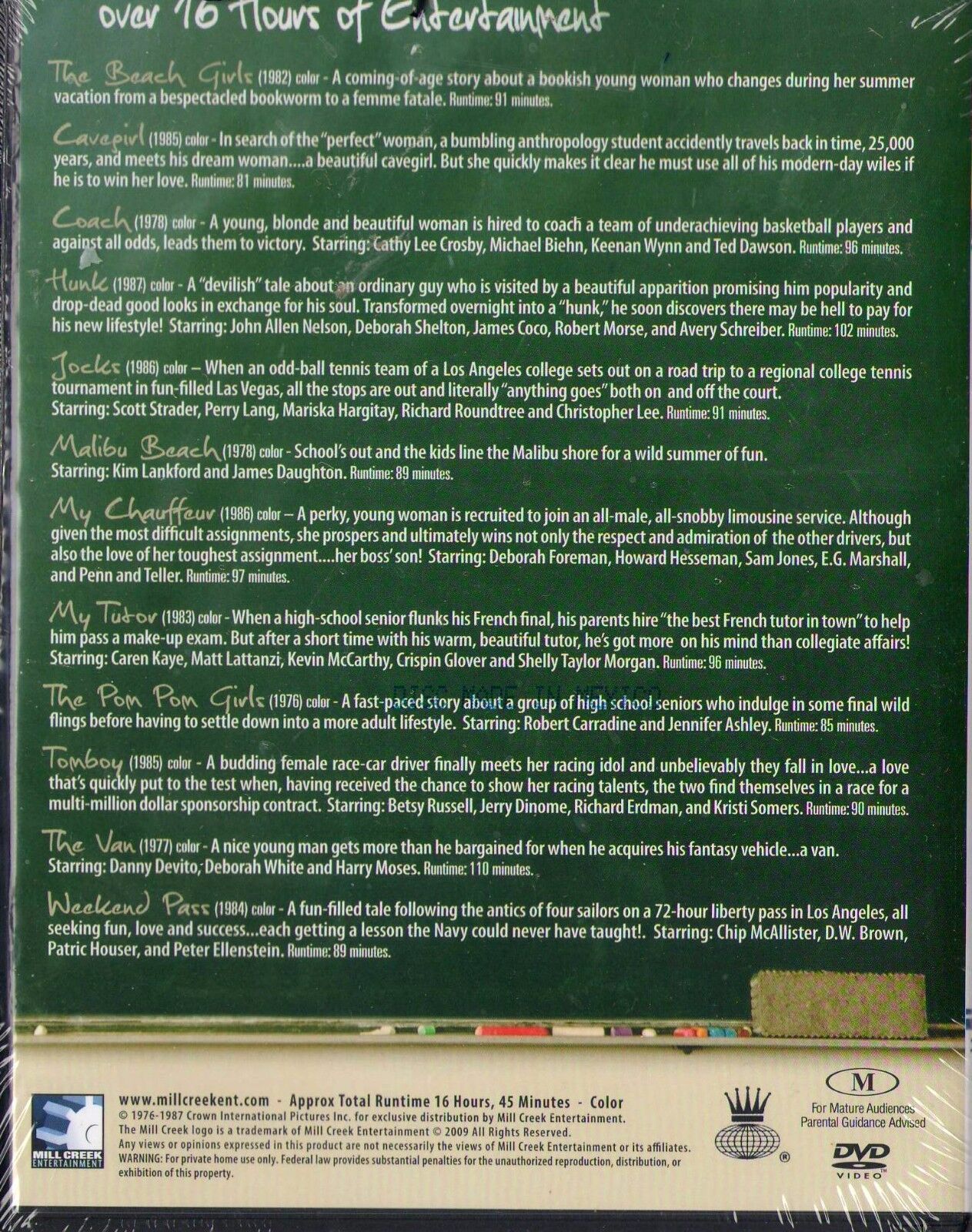 From CROWN INTERNATIONAL PICTURES, Mill Creek Entertainment is proud to present 12 cult comedy classics that will surely entertain and will fit everybody's budget. For over 40 years as a leading force in independent film production and distribution to a worldwide entertainment industry, Crown International has produced quality films with big stars like CRISPIN GLOVER, PATRICK HOUSER, CHIP McALLISTER, PHIL HARTMAN, BETSY RUSSELL, SCOTT STRADER, MARISKA HARGITAY, RICHARD ROUNDTREE, CHRISTOPHER LEE and DANNY DeVITO!
