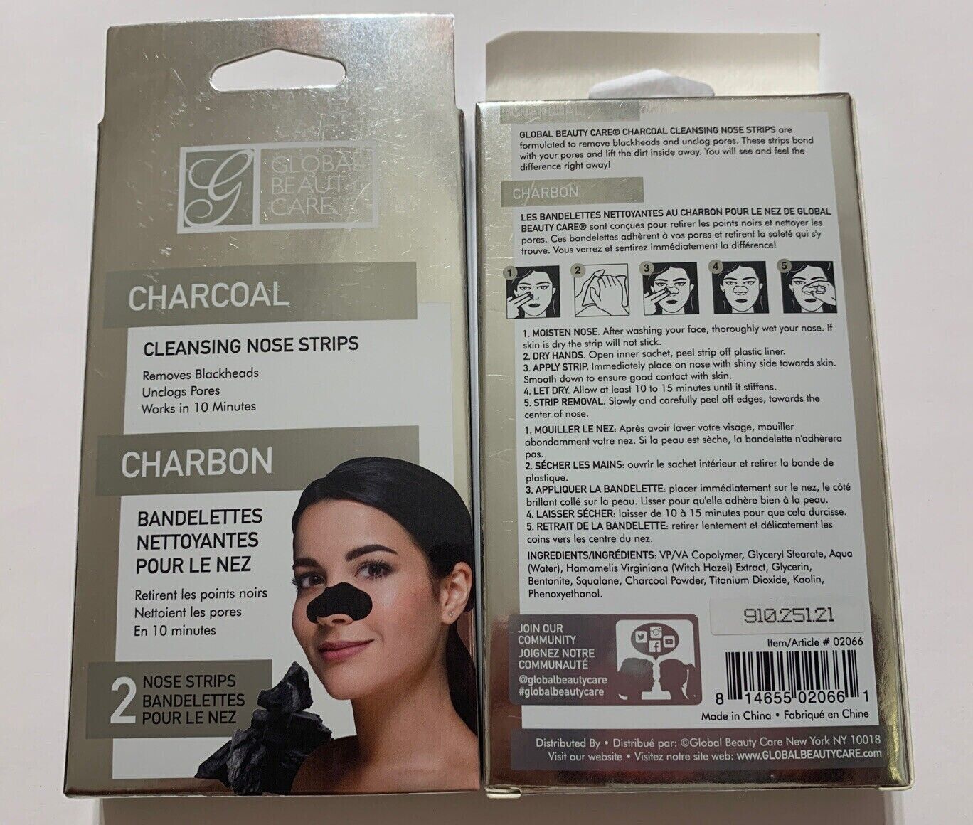 2 PK In Box Global Beauty CHARCOAL Cleansing Pore NOSE STRIPS NEW 10 mins result
