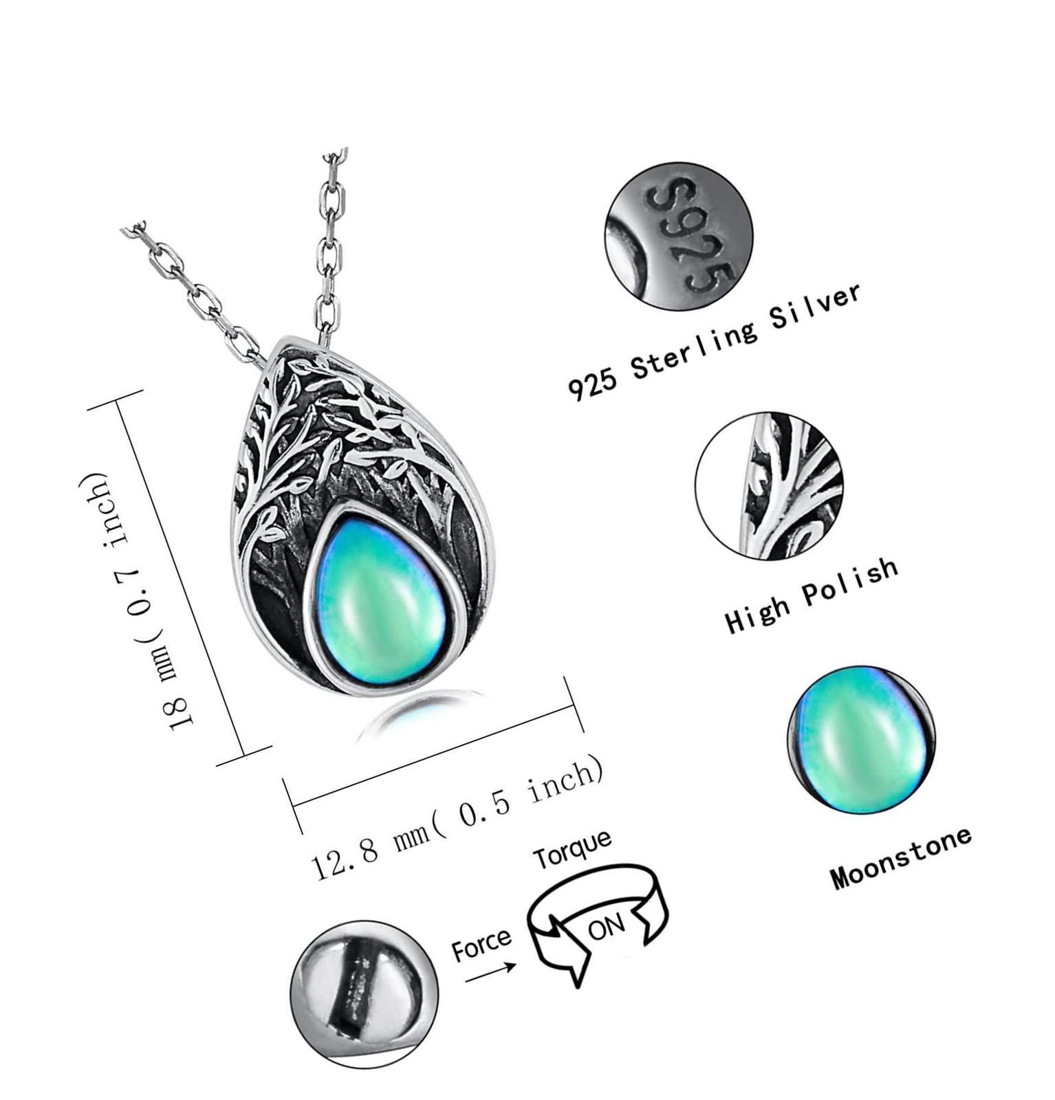 Tree of Life Teardrop Urn Necklace for Ashes 925