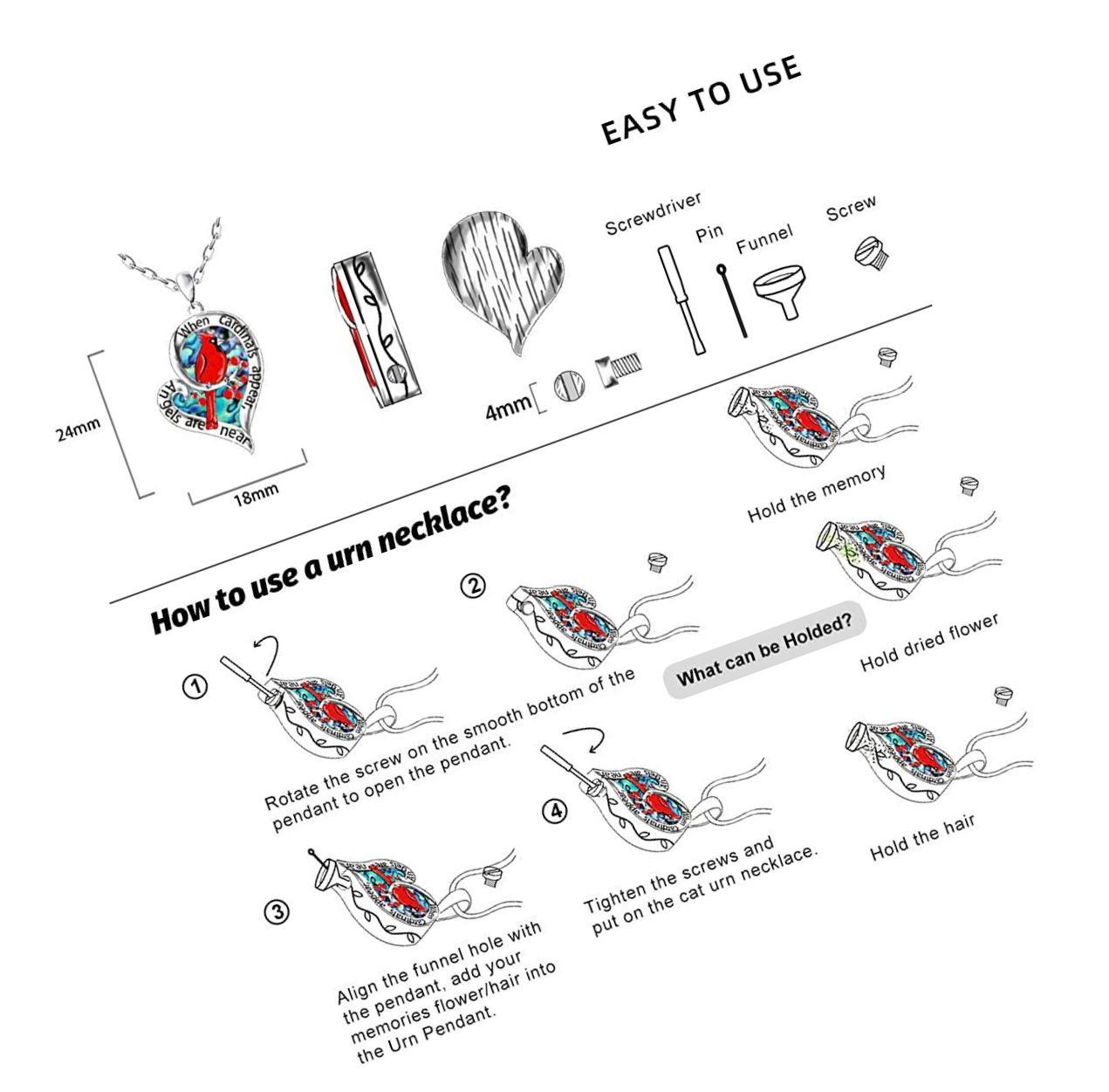 Cardinal Necklace / Cardinal Urn Heart Red Bird Spiritual of