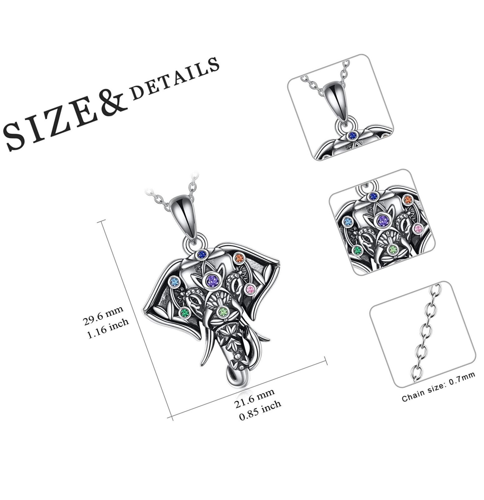 Elephant Necklace with 7 Chakra Good Luck Urn Silver