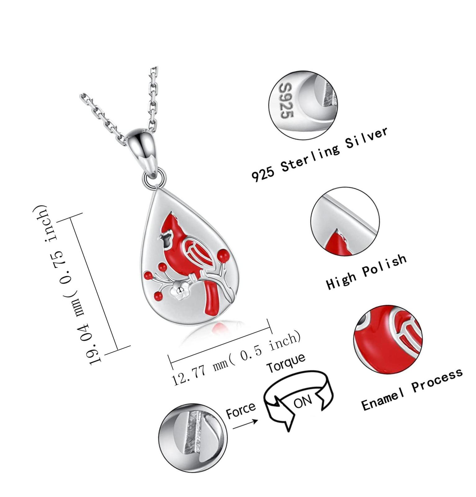 925 Sterling Silver Red Cardinal Bird Necklace Bracelet Urn