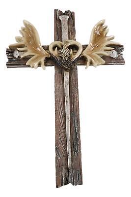 Inspirational Grand Elk Moose Bone Antlers with Spike Nails Faux Wood Wall Cross