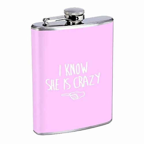 I Know She Is Crazy Hip Flask Stainless Steel 8 Oz Silver Drinking Whiskey Spiri