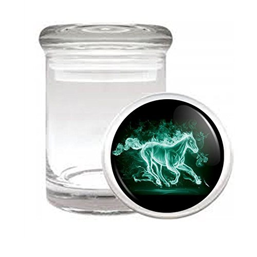 Fiery Green Horse Em1 Medical Glass Stash Jar 3'' X 2'' Herb And Spice Storage A