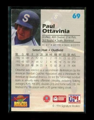 Vintage 1994 SIGNATURE ROOKIES DRAFT PICKS AUTOGRAPH Baseball Card #69 PAUL OTTAVINIA Montreal Expos Limited Edition 6552/7750